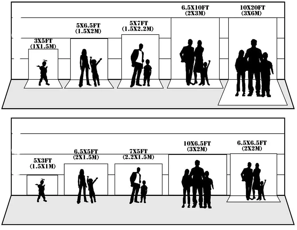 ขนาดของเราคือ กว้าง x สูง หน่วยเป็น ซม.ตัวอย่างเช่น 300×200 ซม. หมายถึง กว้าง 300 ซม. และสูง 200 ซม.