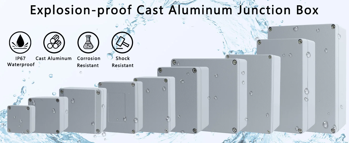 IP67 กลางแจ้งตู้อลูมิเนียมกันน้ําอุตสาหกรรมกล่องแยกโครงการเคสเครื่องมือป้องกันการระเบิดอิเล็กทรอนิกส์ที่อยู่อาศัย