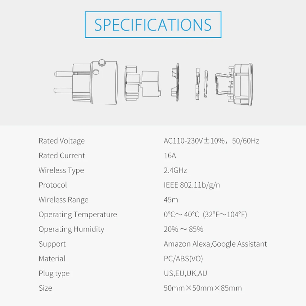 TUYA Smart Life APP Monitor ปลั๊ก WiFi + ซ็อกเก็ตบลูทูธ EU 16A Power การตรวจสอบ Timing Voice Control ทํางานร่วมกับ Alexa Google Home