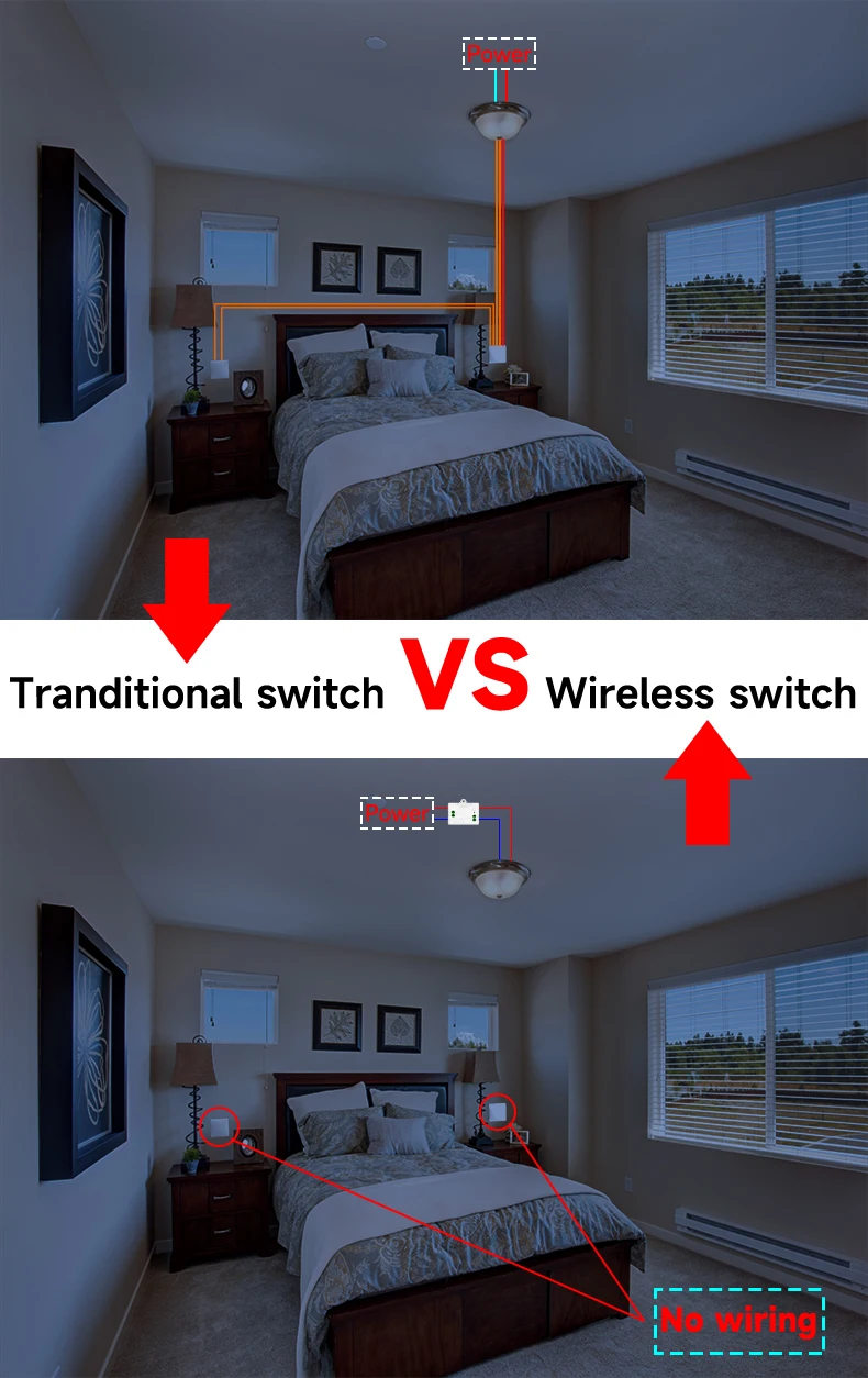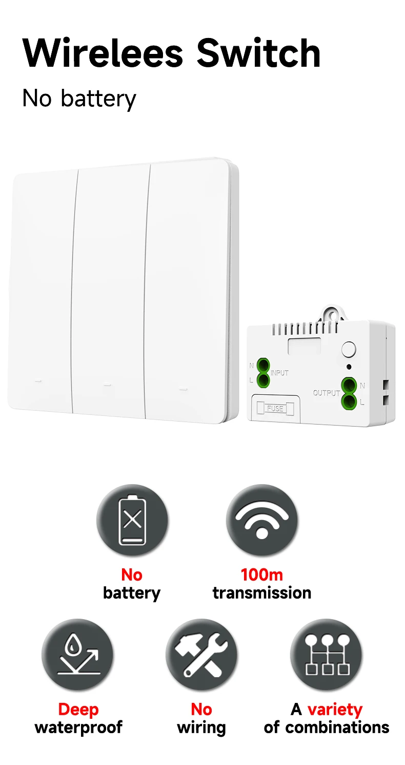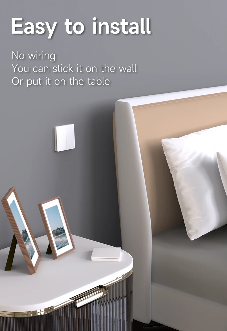 1.สวิตช์นี้ไม่จําเป็นต้องใช้แบตเตอรี่และสายไฟเป็นแบบพลักแอนด์เพลย์ สะดวกและใช้งานได้จริง และติดตั้งง่าย