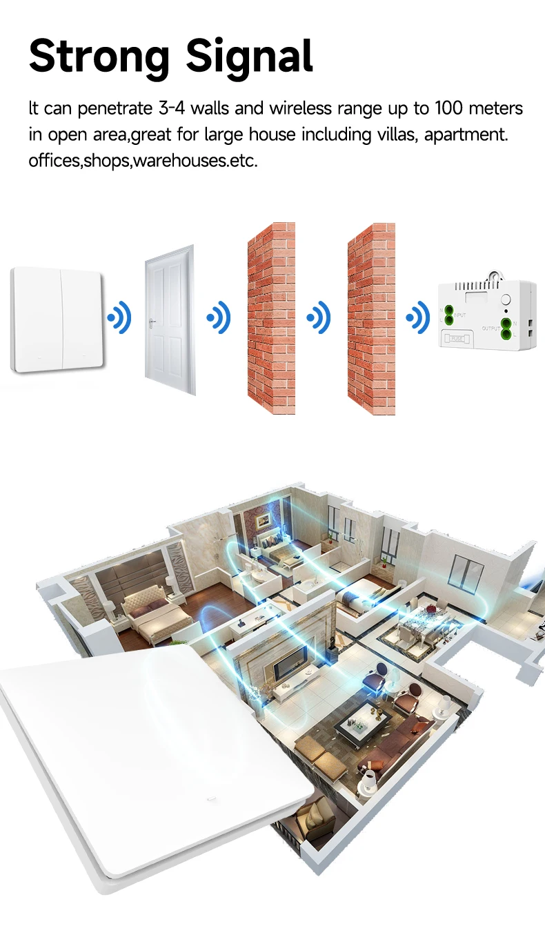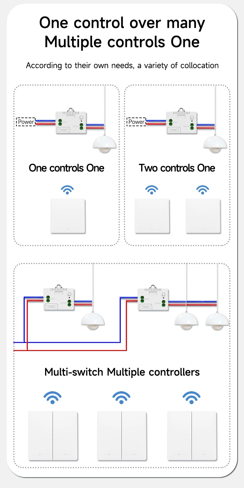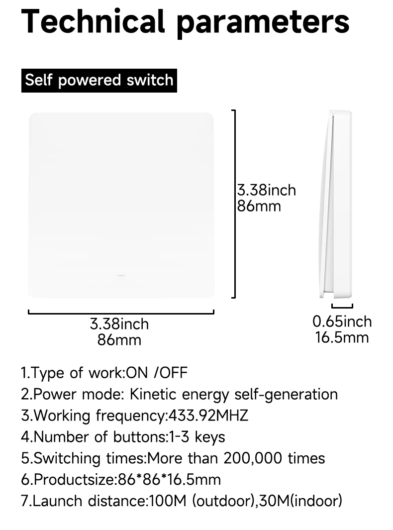 1.สวิตช์นี้ไม่จําเป็นต้องใช้แบตเตอรี่และสายไฟเป็นแบบพลักแอนด์เพลย์ สะดวกและใช้งานได้จริง และติดตั้งง่าย