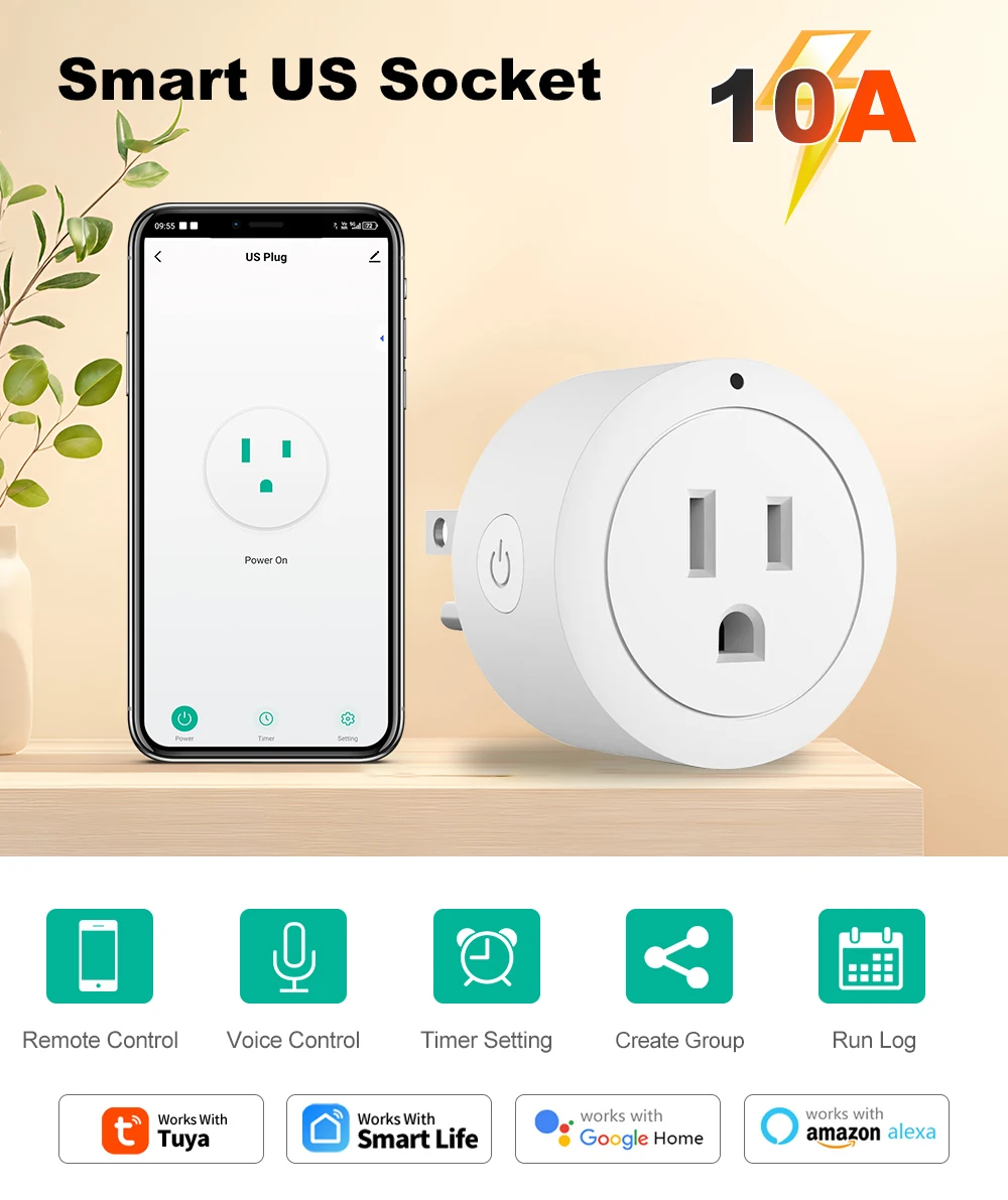 Tuya Smart Life Wifi Plug US ซ็อกเก็ตสวิตช์ไร้สาย Smart Home App จับเวลาฉากการเชื่อมโยงสนับสนุน Alexa Google Home Voice Assistant