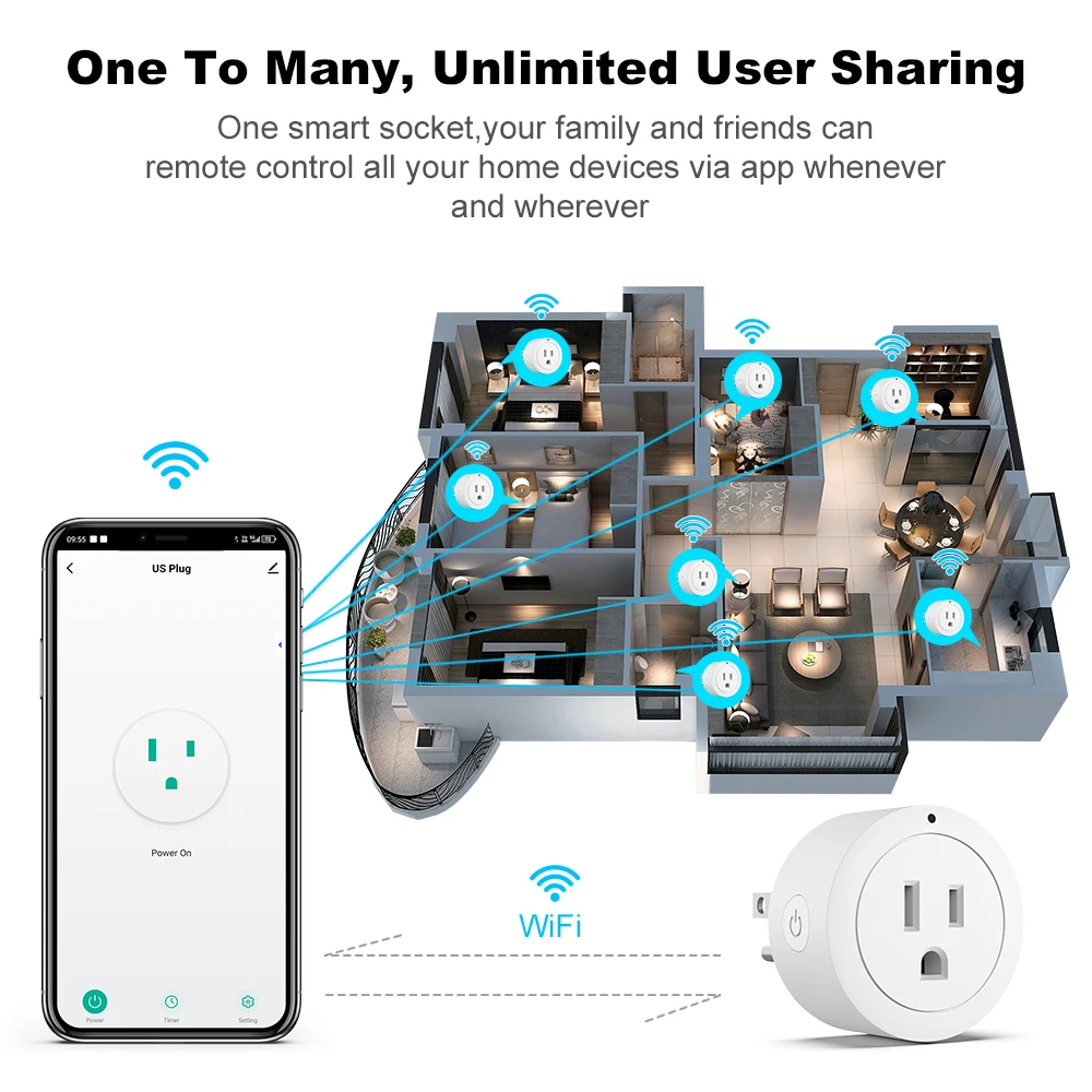 Tuya Smart Life ปลั๊ก Wifi US ซ็อกเก็ตสวิตช์ไร้สายสมาร์ทโฮม APP จับเวลาฉากเชื่อมโยงสนับสนุน Alexa Google Home Voice Assitant