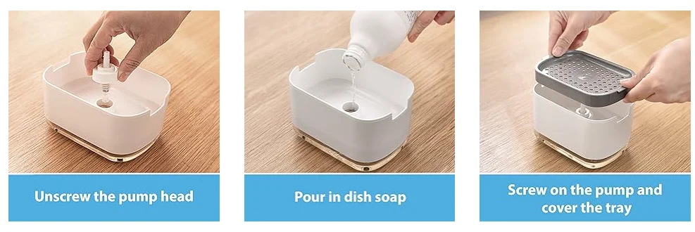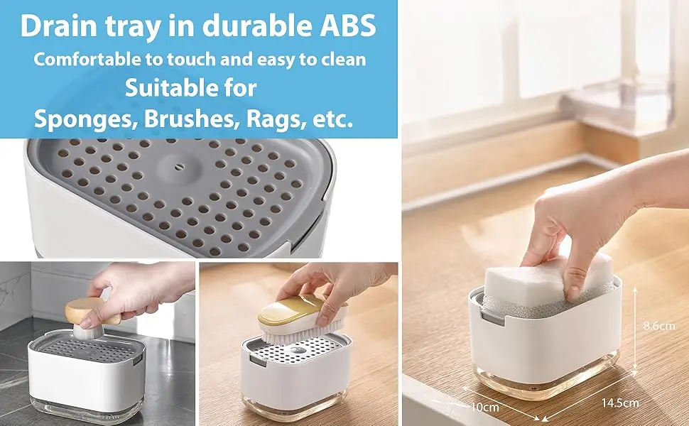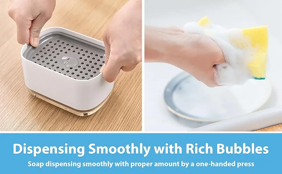 1.การจ่ายสบู่ที่แม่นยำ: กดแผ่นด้านบนเบาๆ เพื่อจ่ายสบู่ลงบนฟองน้ำโดยตรงมันจะจ่ายน้ำยาล้างจานในปริมาณที่เหมาะสมลงบนฟองน้ำ