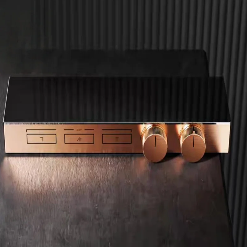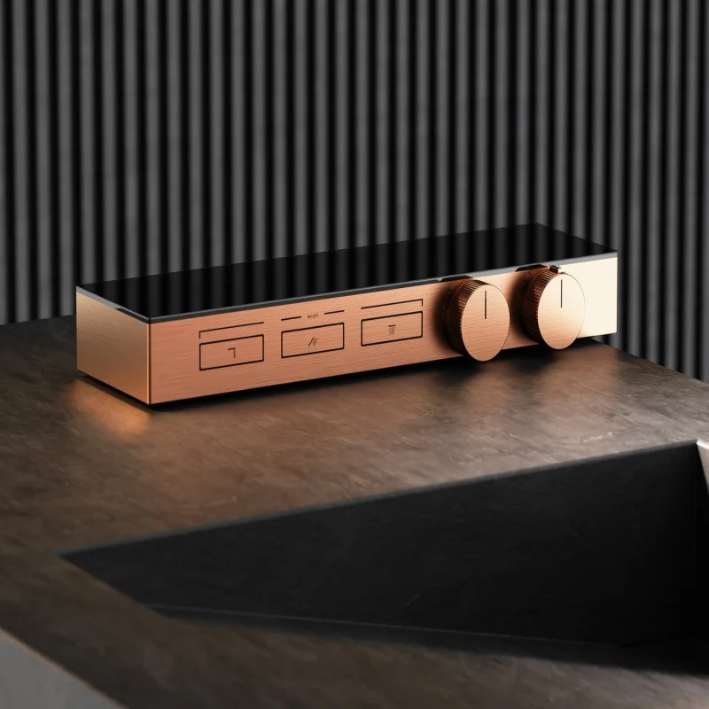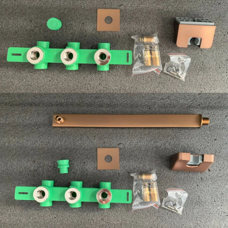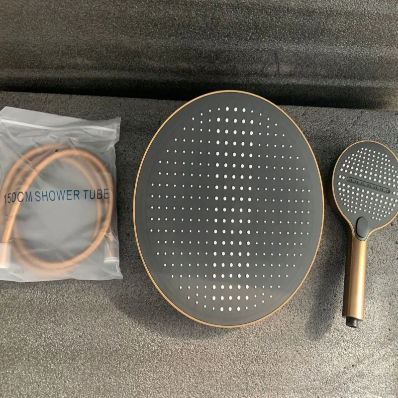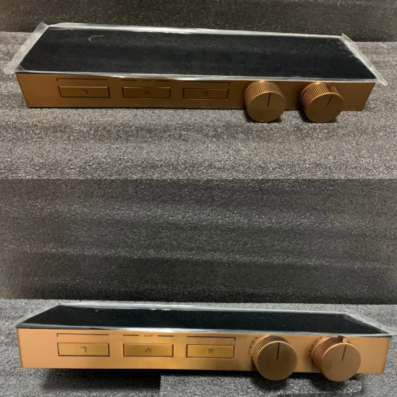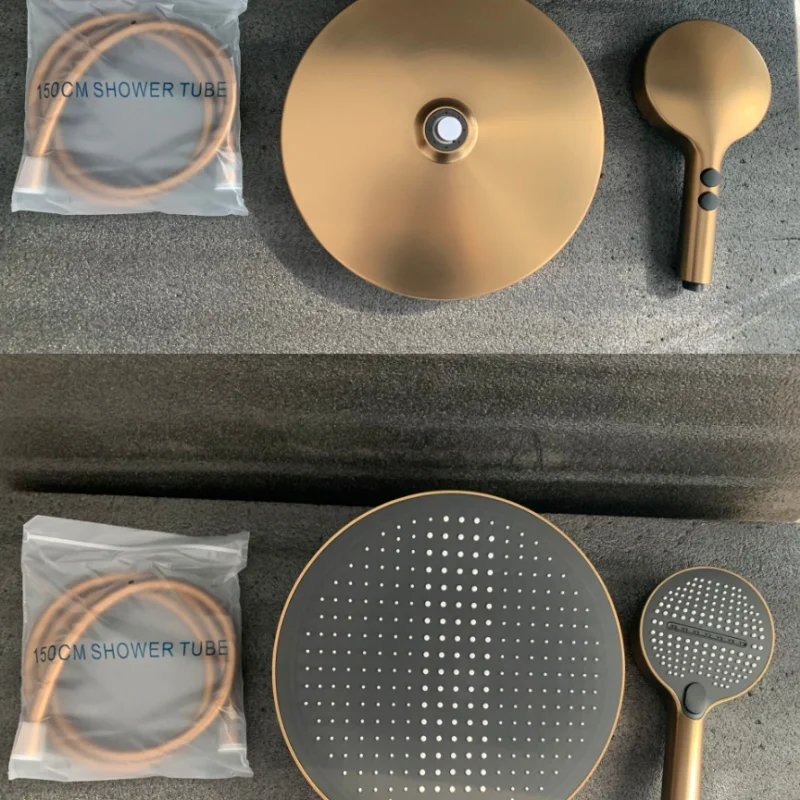 แปรง Rose Gold Thermostatic ห้องน้ำฝักบัวก๊อกน้ำทองเหลืองสีเทาห้องน้ำฝนฝักบัวก๊อกน้ำติดผนังอ่างอาบน้ำฝักบัวก๊อกน้ำ