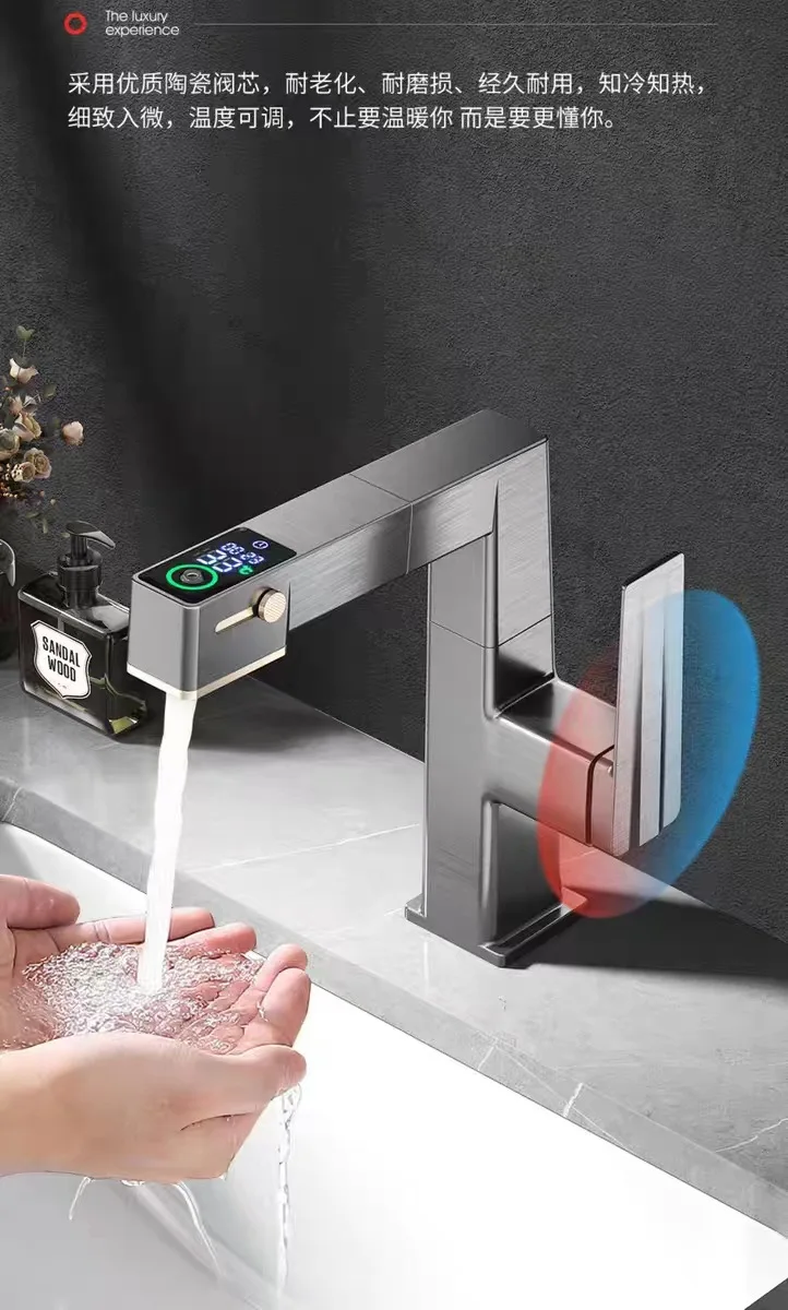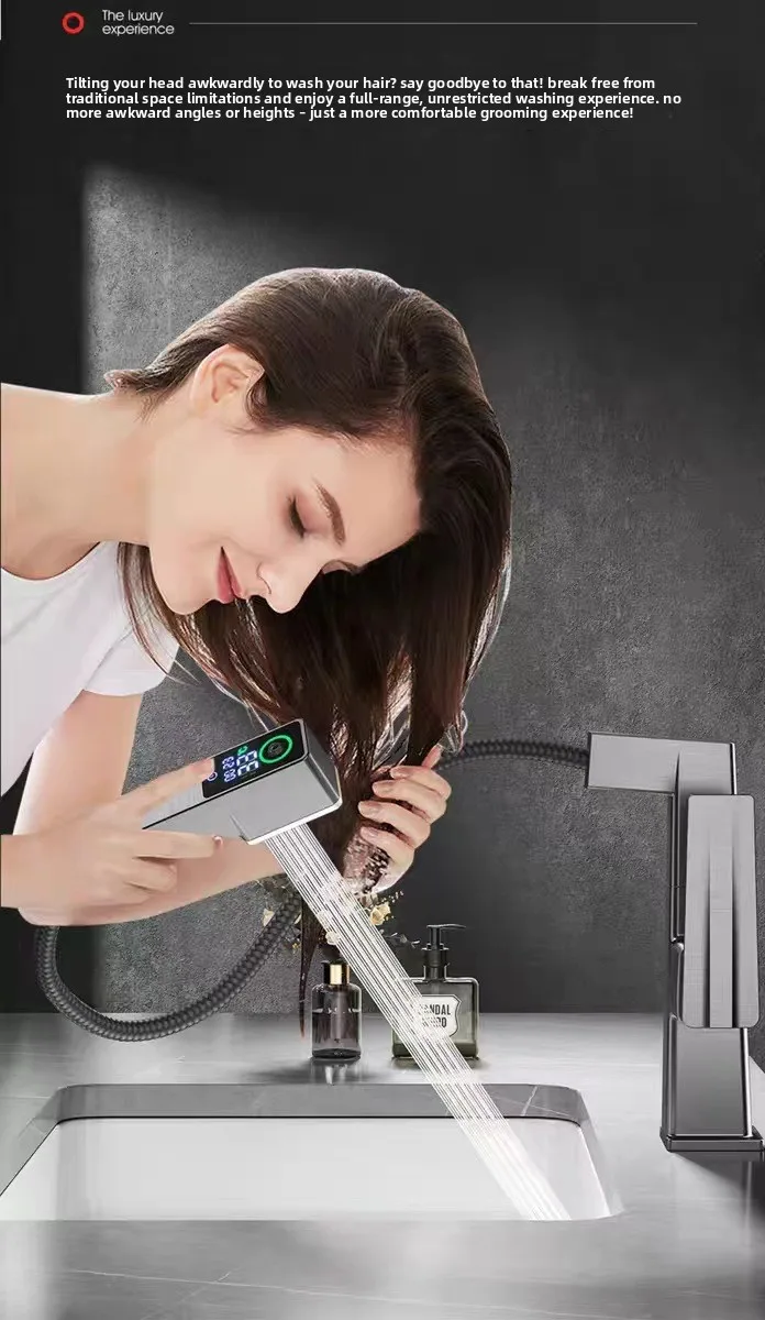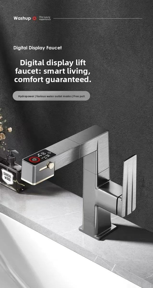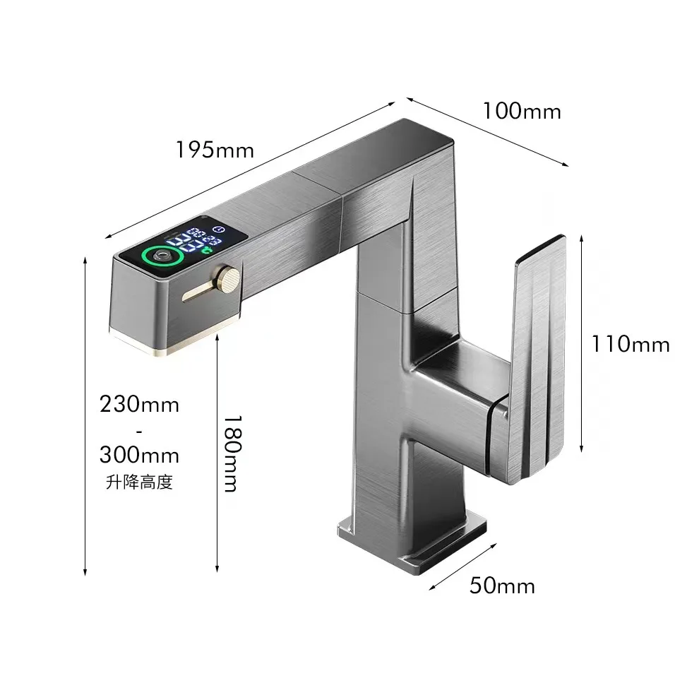 ก๊อกน้ำห้องน้ำดีไซน์หรูหราพร้อมหน้าจอดิจิตอล แสดงอุณหภูมิ น้ำร้อนน้ำเย็น แบบยกขึ้นได้ ดึงออกได้ ใช้ในครัวเรือน รุ่น G3/8G1/2