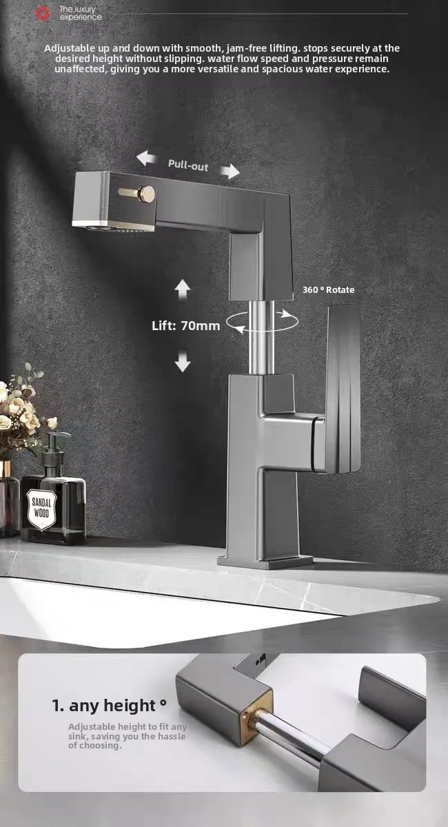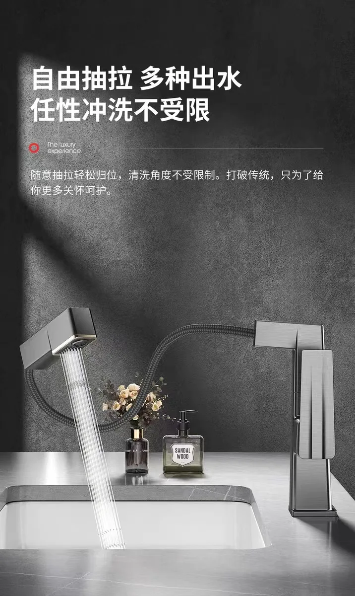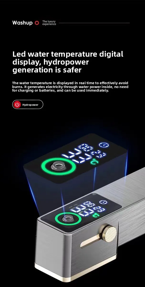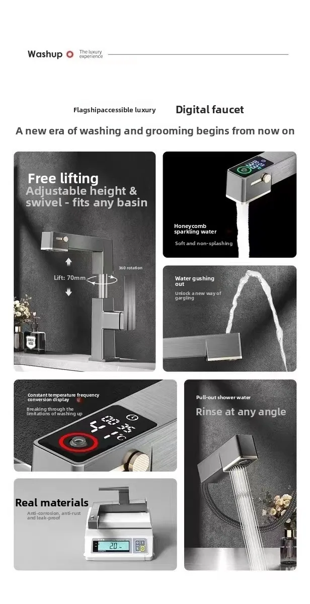 ก๊อกน้ำห้องน้ำดีไซน์หรูหราพร้อมหน้าจอดิจิตอล แสดงอุณหภูมิ น้ำร้อนน้ำเย็น แบบยกขึ้นได้ ดึงออกได้ ใช้ในครัวเรือน รุ่น G3/8G1/2