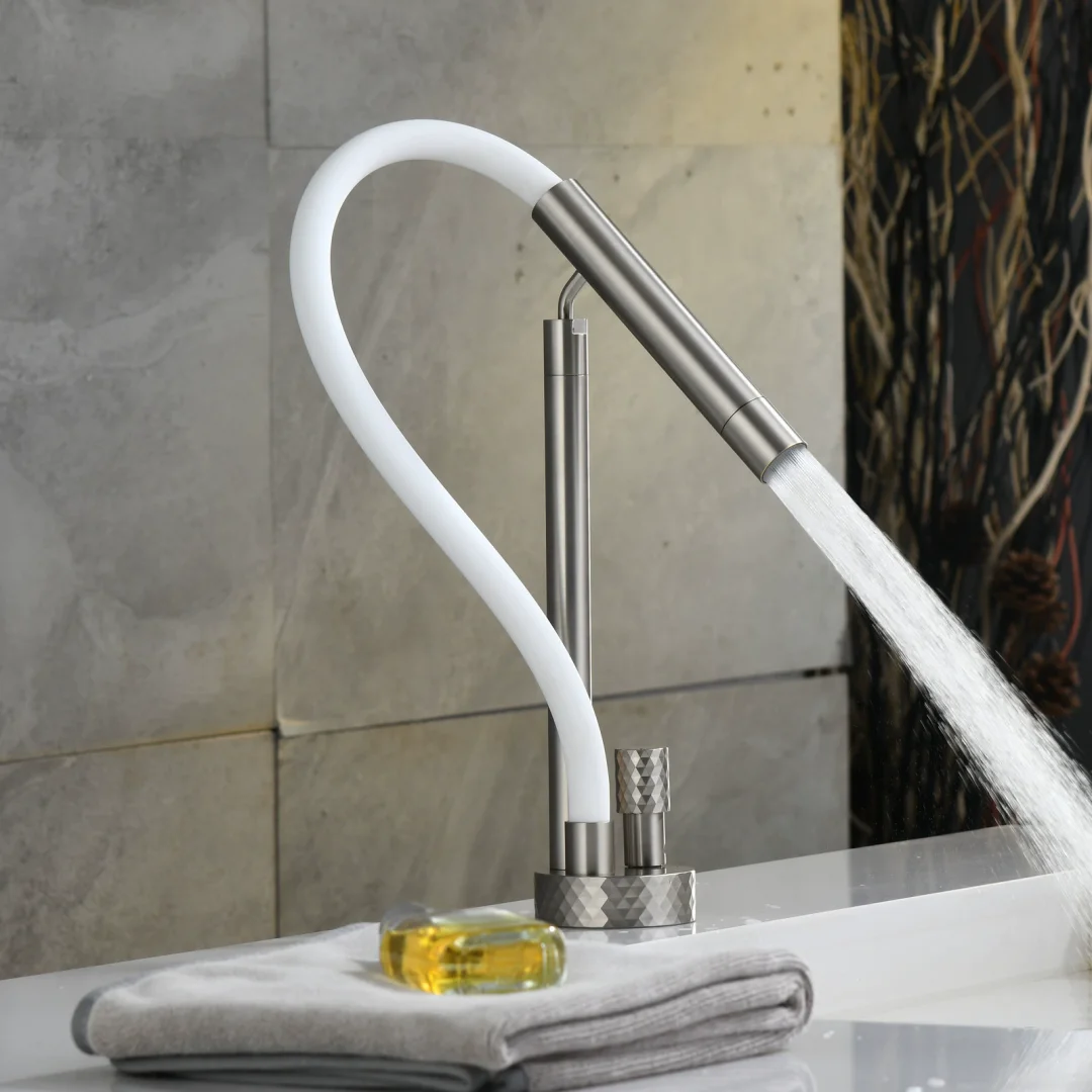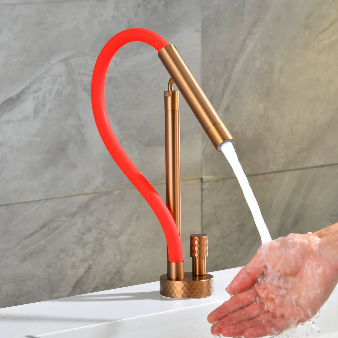 ก๊อกน้ำห้องน้ำสีโรสโกลด์ขัดเงา ก๊อกน้ำอ่างล้างหน้าสีทองขัดเงา ก๊อกน้ำทองเหลืองสำหรับน้ำร้อนและน้ำเย็น ก๊อกน้ำอ่างล้างหน้าสีนิกเกิล ก๊อกน้ำห้องน้ำสีเทา