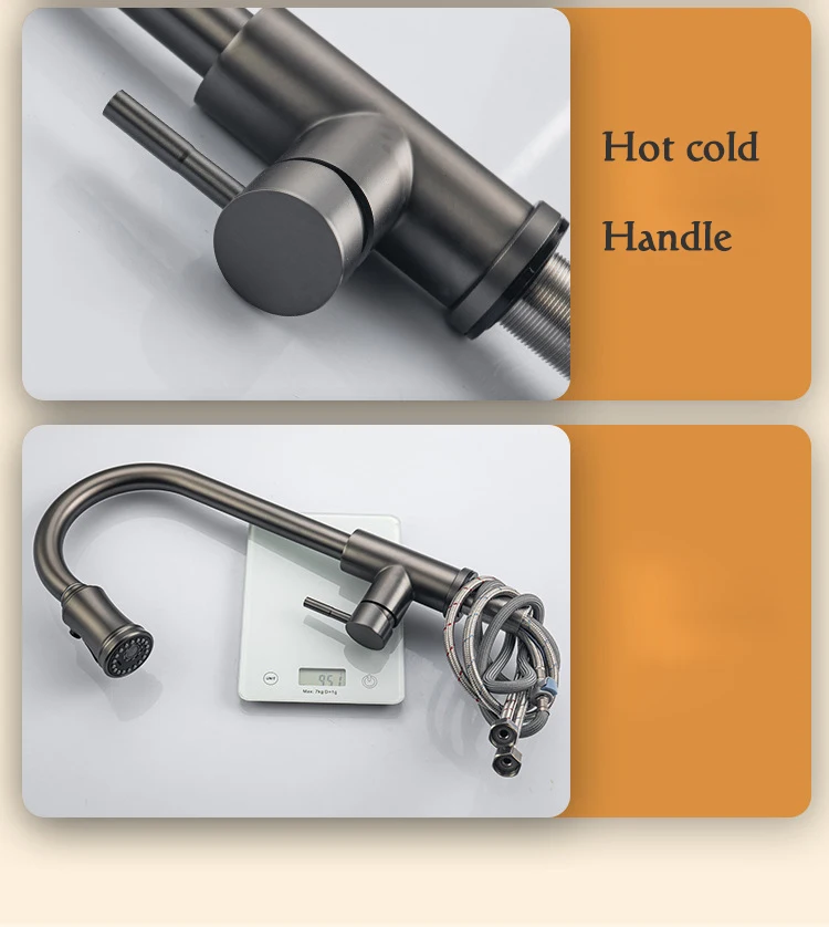 【บำรุงรักษาง่าย】วัสดุสแตนเลสช่วยให้มั่นใจได้ถึงอายุการใช้งานของก๊อกน้ำห้องครัวพร้อมเครื่องพ่นสารเคมี ทำให้ง่ายต่อการเช็ดและบำรุงรักษา และช่วยลดภาระงาน