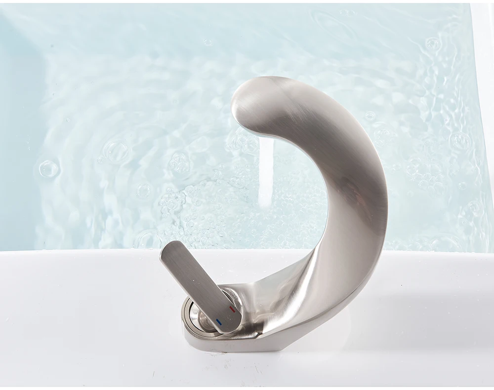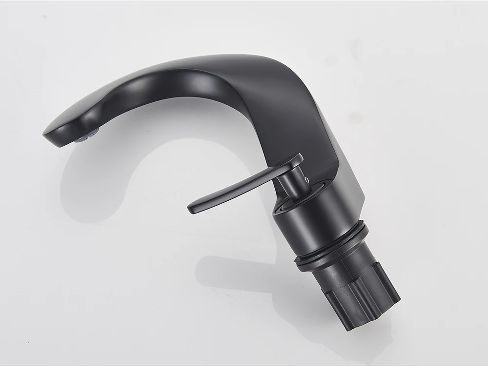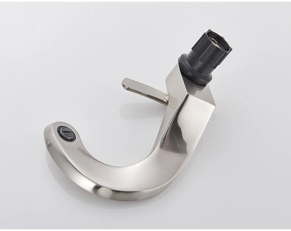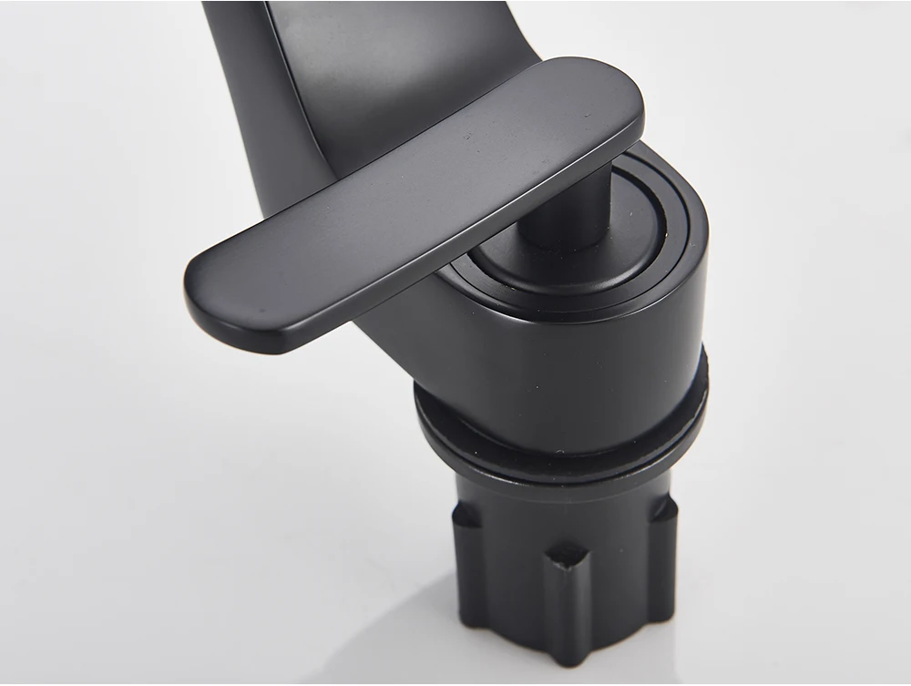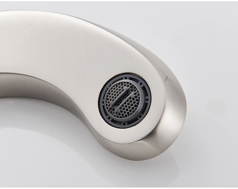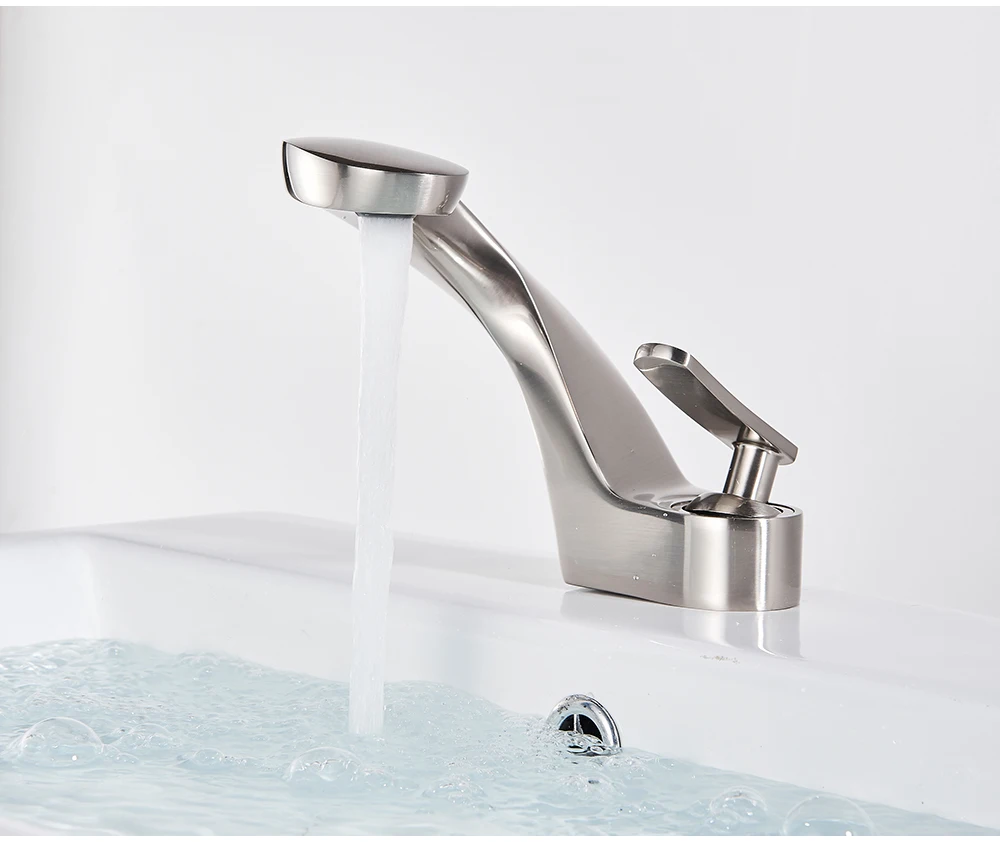 ก๊อกน้ำอ่างล้างหน้าแบบติดตั้งบนเคาน์เตอร์ สีดำด้าน วัสดุทองเหลือง ก๊อกผสมสำหรับอ่างล้างหน้า ดีไซน์มือจับเดี่ยว ก๊อกน้ำสำหรับห้องน้ำ พร้อมผิวสัมผัสแบบแปรงนิกเกิล รองรับน้ำร้อนและน้ำเย็น