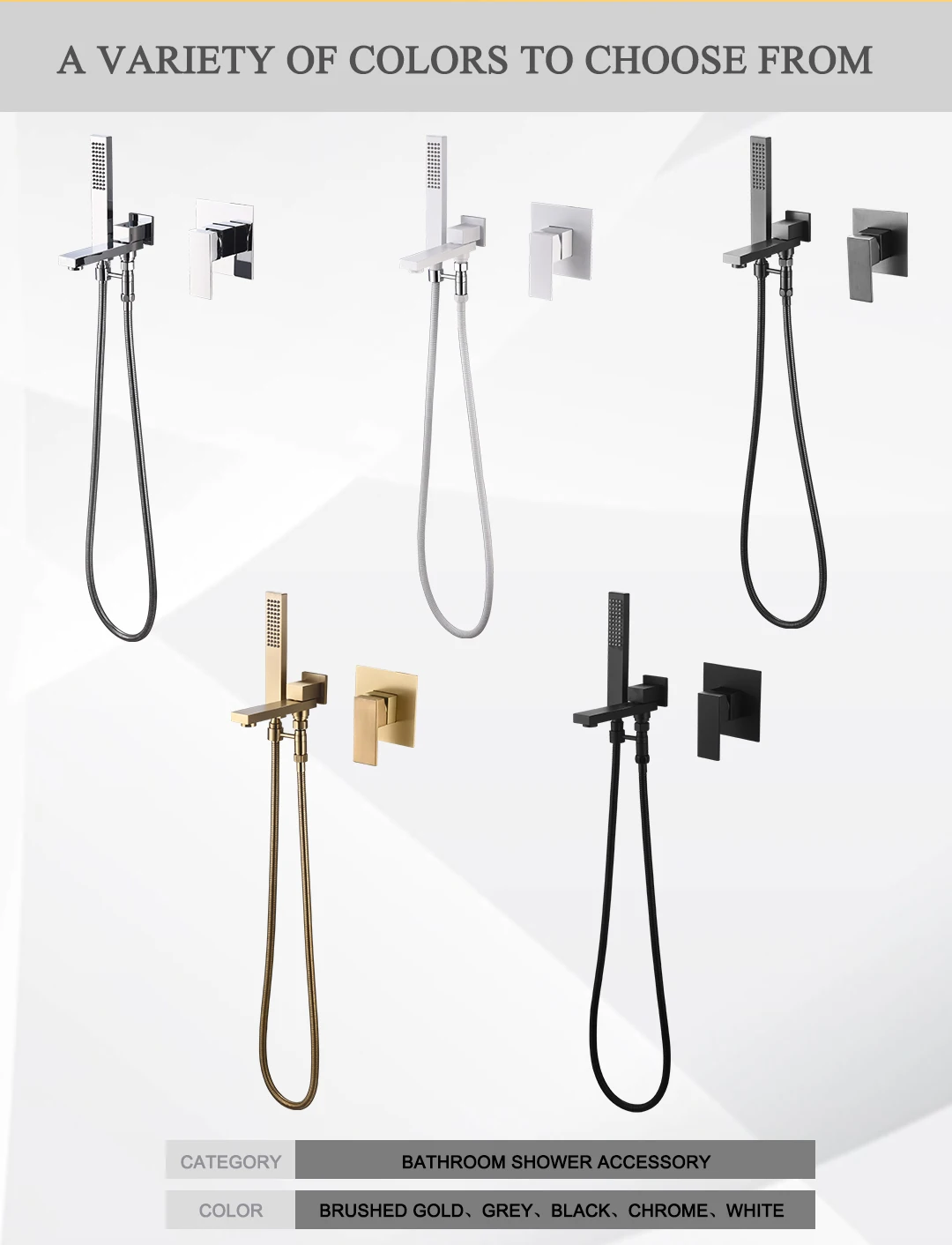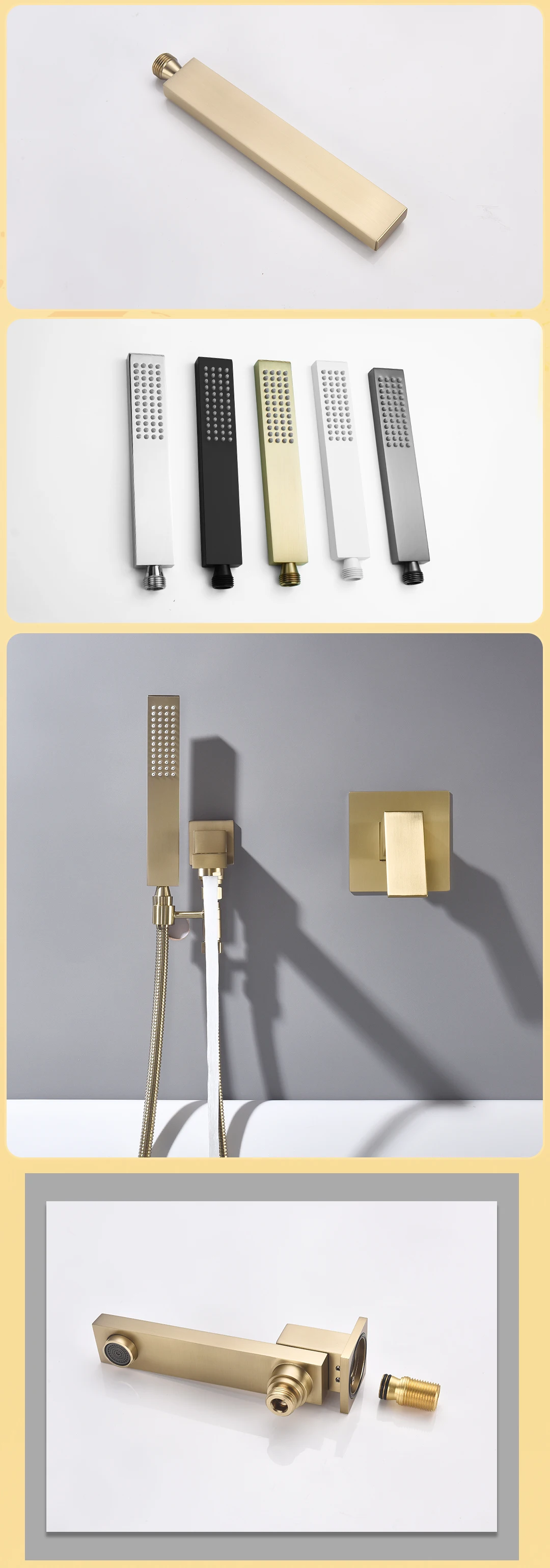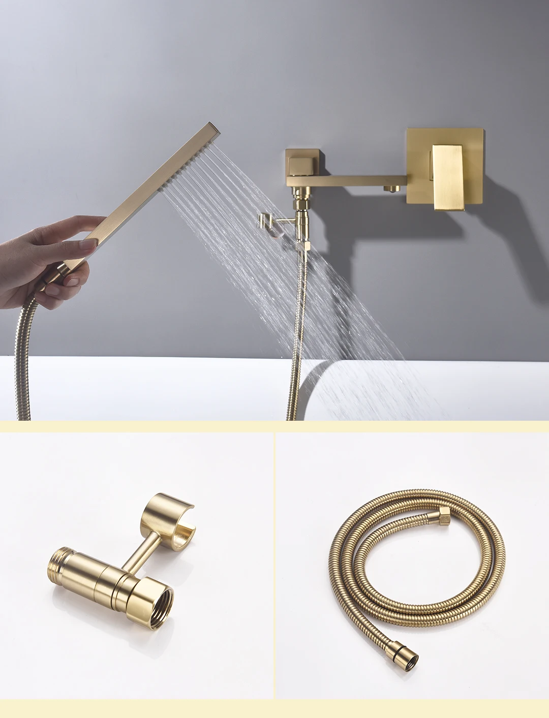ก๊อกน้ำอ่างอาบน้ำแบบติดผนัง สีดำ ทำจากทองเหลือง พร้อมหัวก๊อกหมุนได้และฝักบัวมือ สำหรับอ่างอาบน้ำน้ำร้อนและน้ำเย็น
