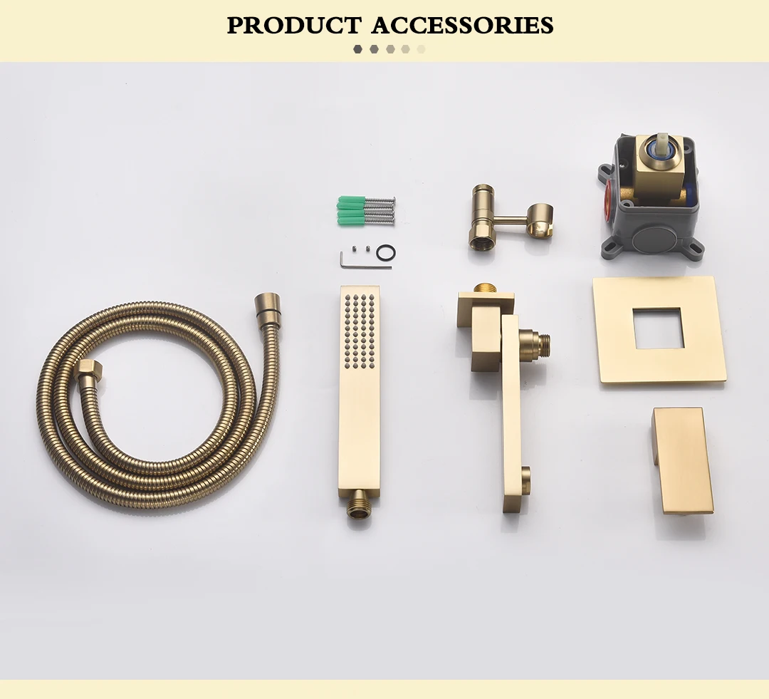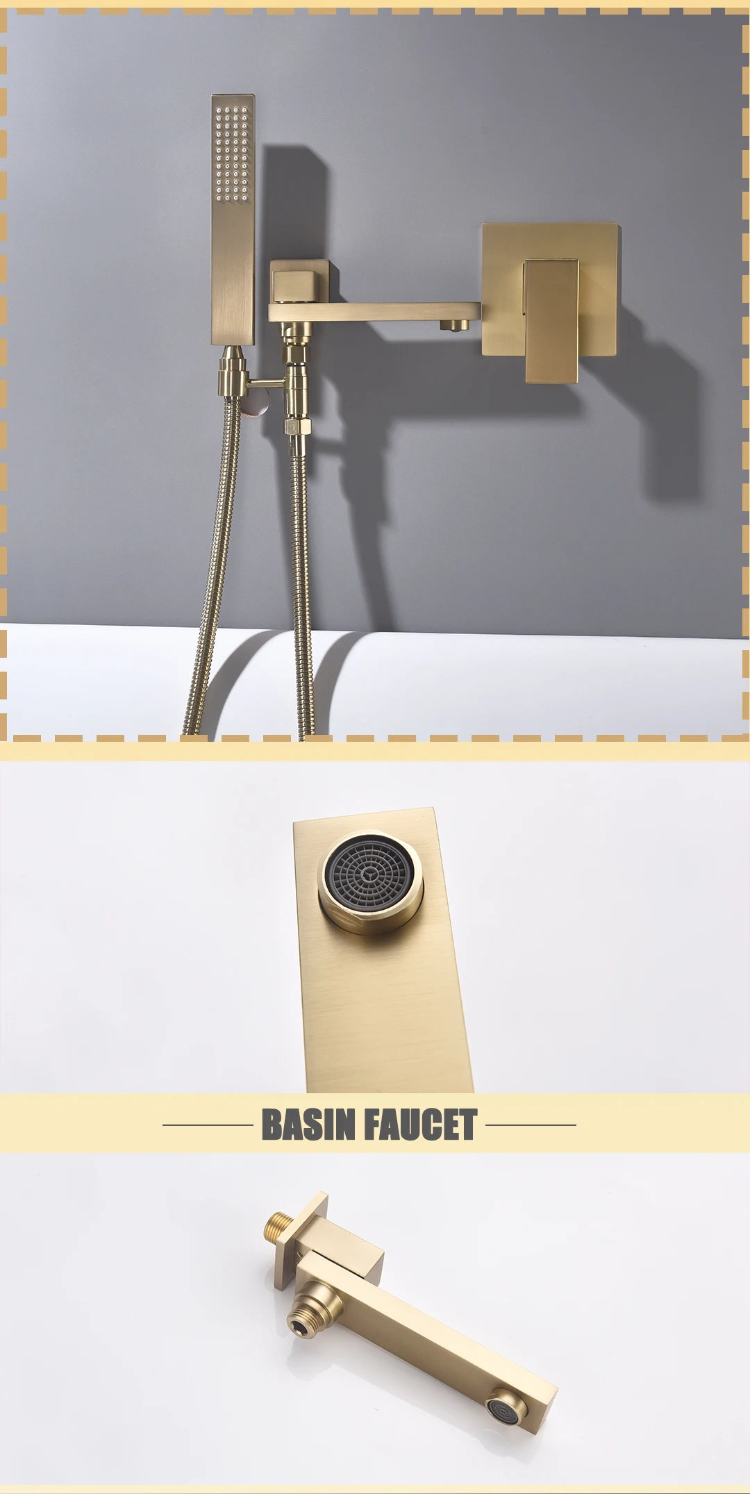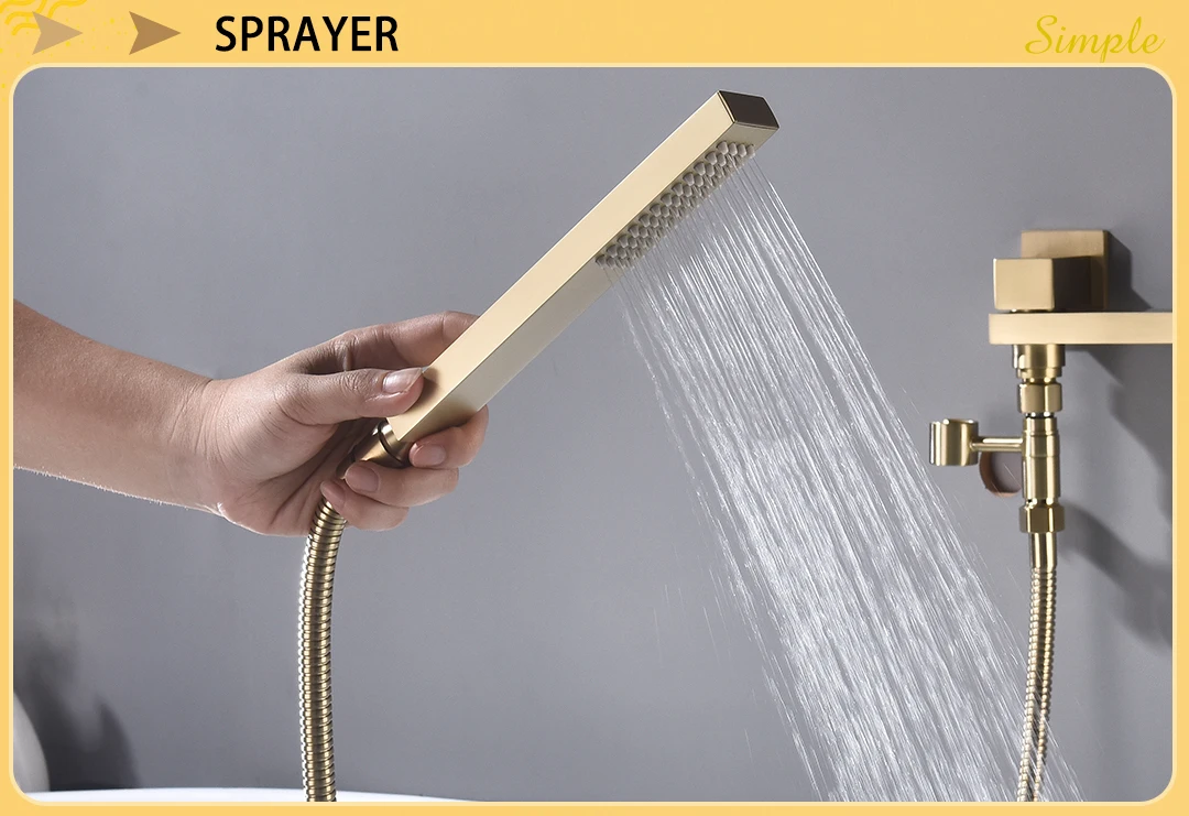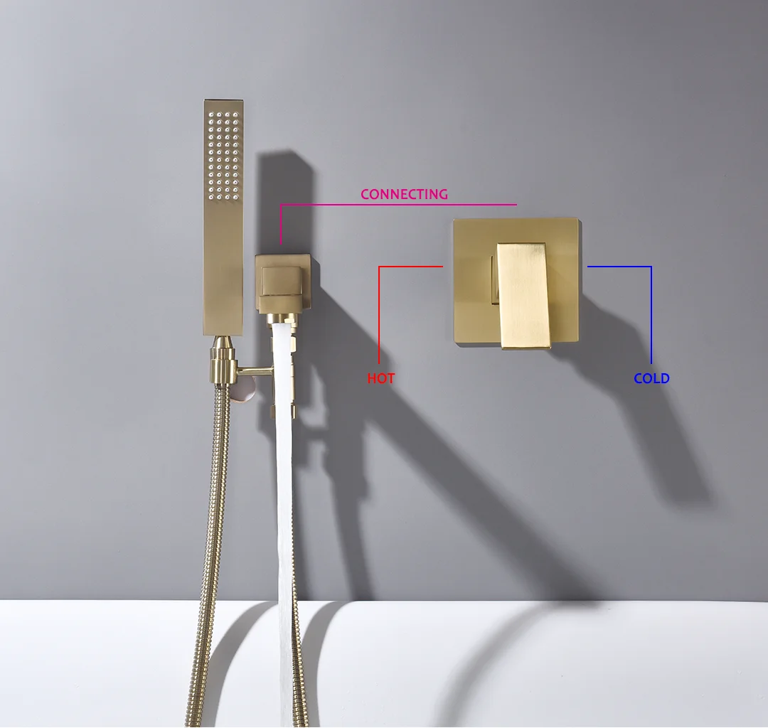 ก๊อกน้ำอ่างอาบน้ำแบบติดผนัง สีดำ ทำจากทองเหลือง พร้อมหัวก๊อกหมุนได้และฝักบัวมือ สำหรับอ่างอาบน้ำน้ำร้อนและน้ำเย็น