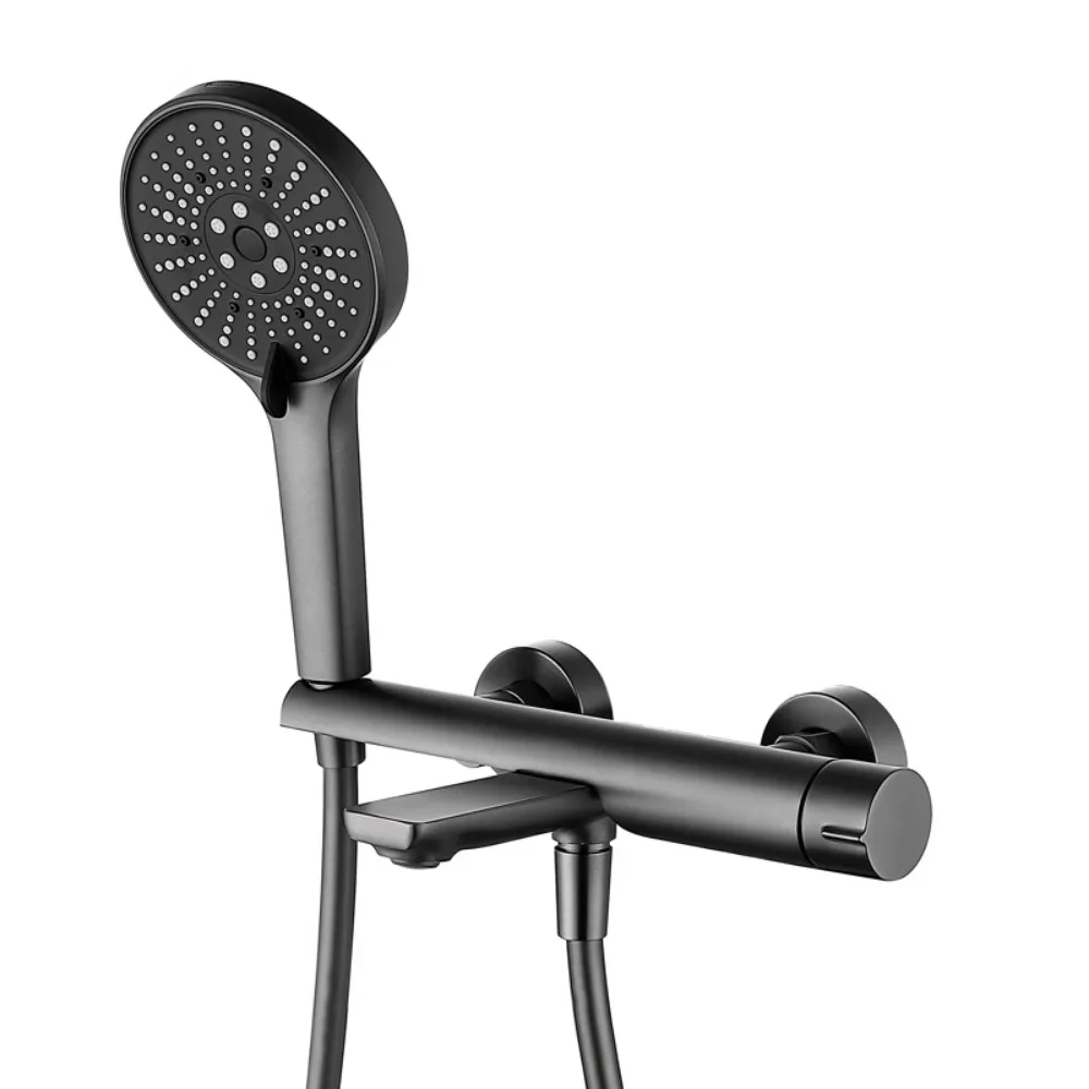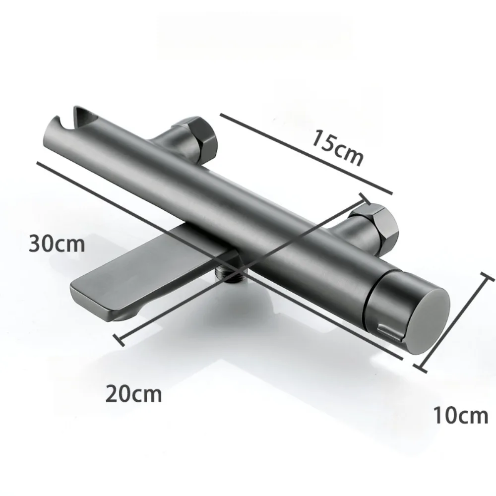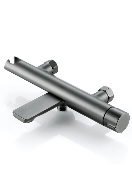 ก๊อกน้ําข้างอ่างอาบน้ําแบบขยายสีเทาปืนหรูหราน้ําร้อนและน้ําเย็นวาล์วผสมทองเหลืองพร้อมฝักบัวปืนฉีด
