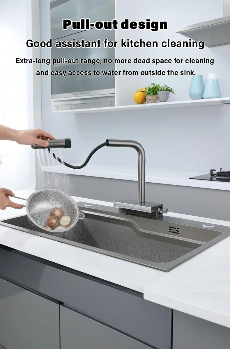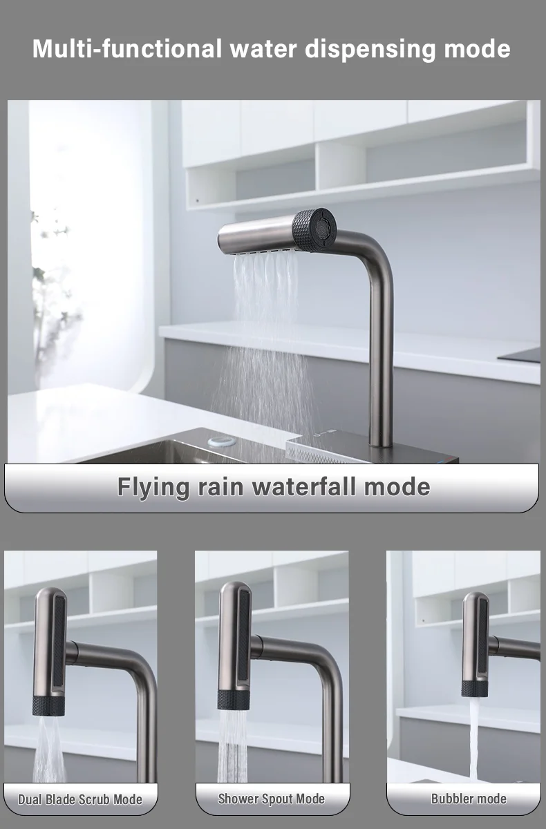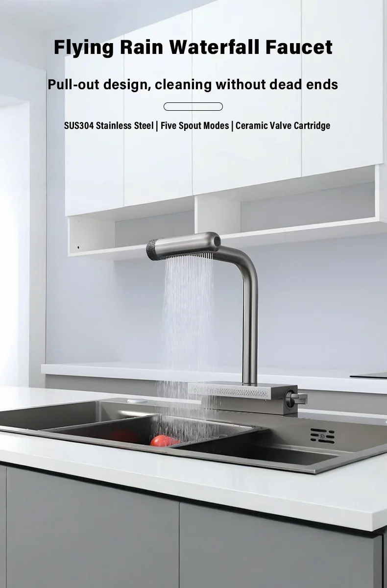 เป็นคนแรกที่จะอ่าน"ก๊อกน้ําสแตนเลสแบบดึงออกในครัว, พวยกามัลติฟังก์ชั่น, การควบคุมคู่ร้อนและเย็น, แกนวาล์วเซรามิก"