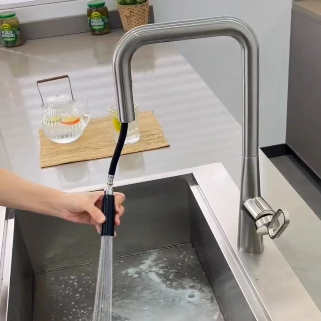 ก๊อกน้ำในครัวแบบดึงออกได้ ร้อน-เย็น ก้านโยกเดี่ยว ก๊อกอ่างล้างจานทองเหลืองสีเขียว