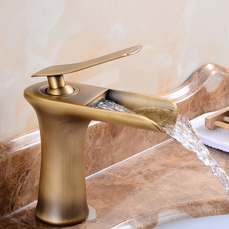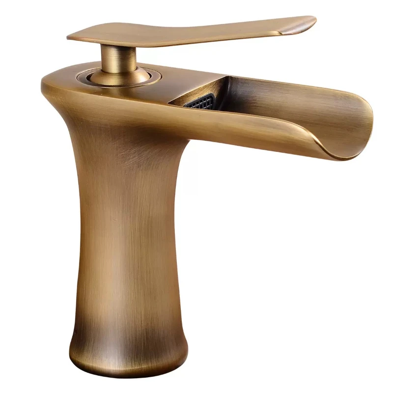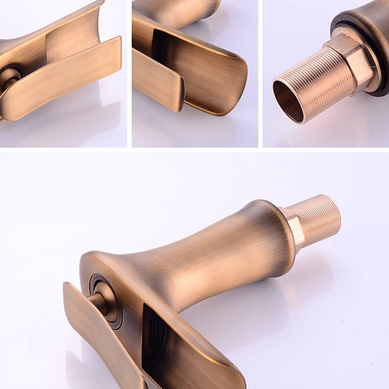 ก๊อกน้ําอ่างล้างหน้าน้ําตกก๊อกน้ําห้องน้ําเดี่ยวอ่างล้างหน้าแตะ Bath ก๊อกน้ําทองเหลืองโบราณอ่างล้างจาน Water Crane Silver ก๊อก