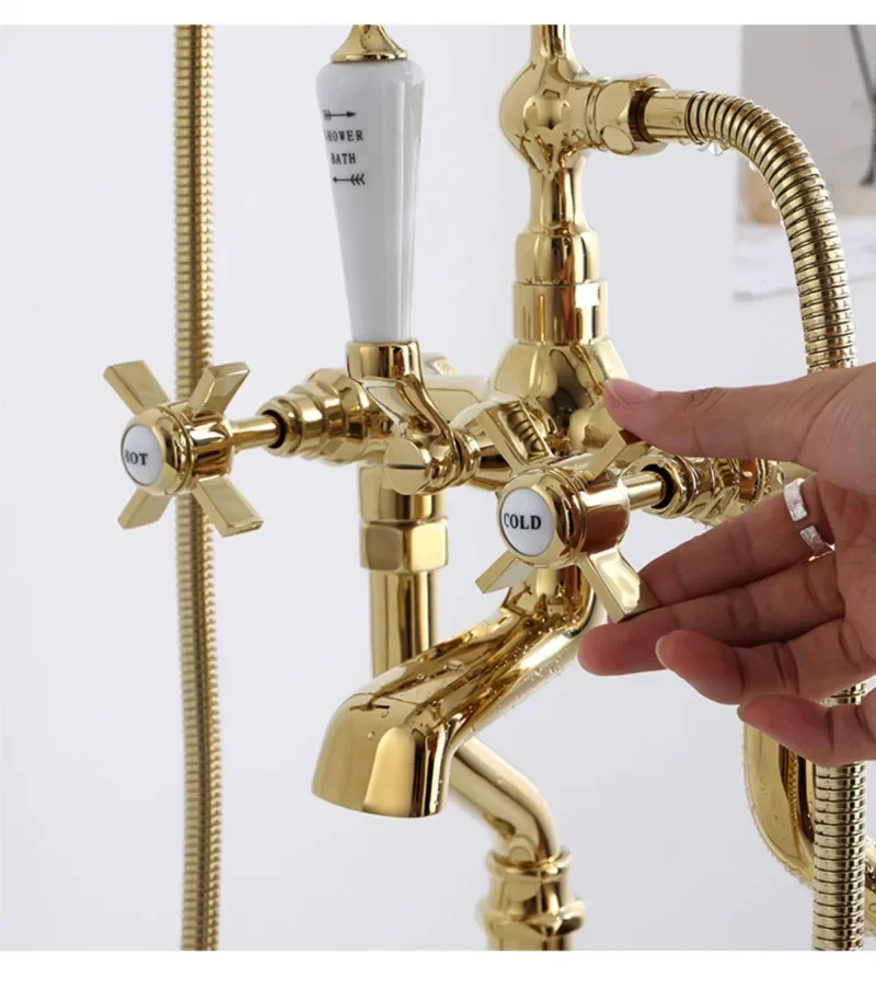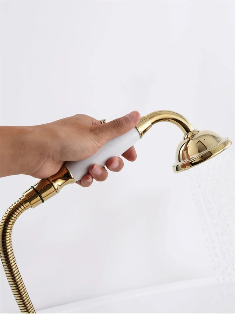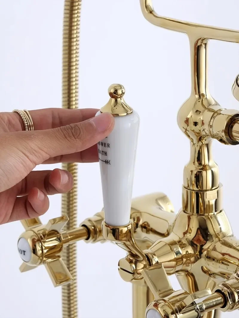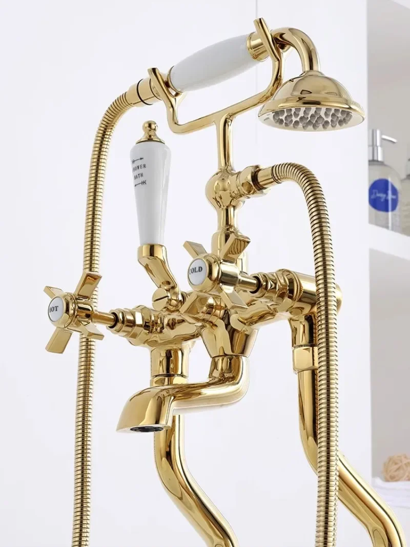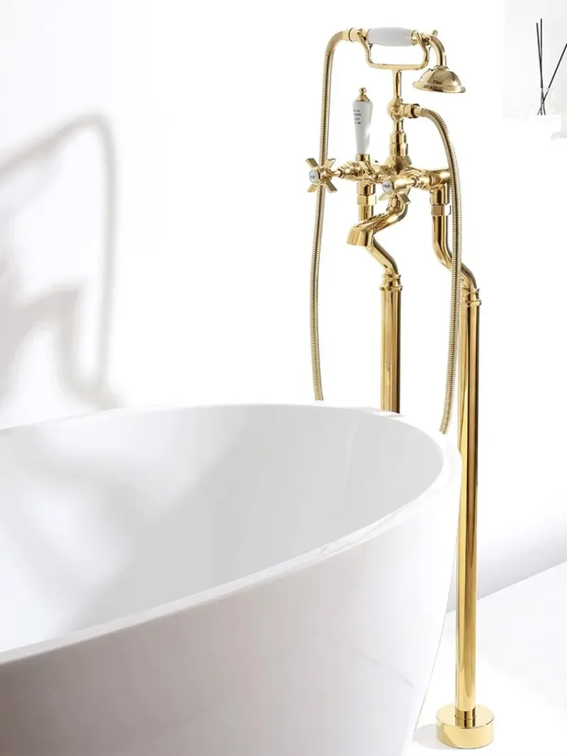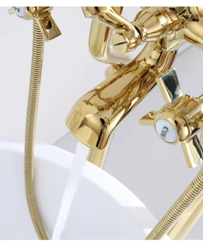 ชุดก๊อกน้ําอ่างอาบน้ําดาดฟ้าพื้นทองคลาสสิกคุณภาพสูงโครเมี่ยมทองสไตล์อเมริกัน