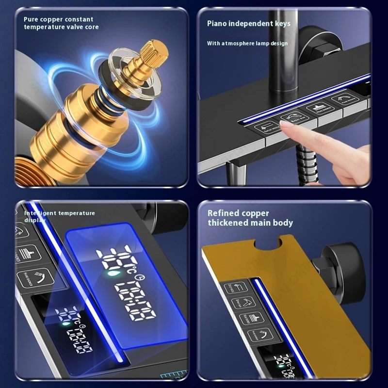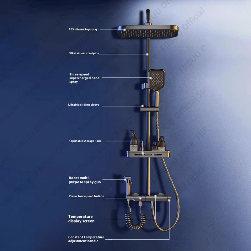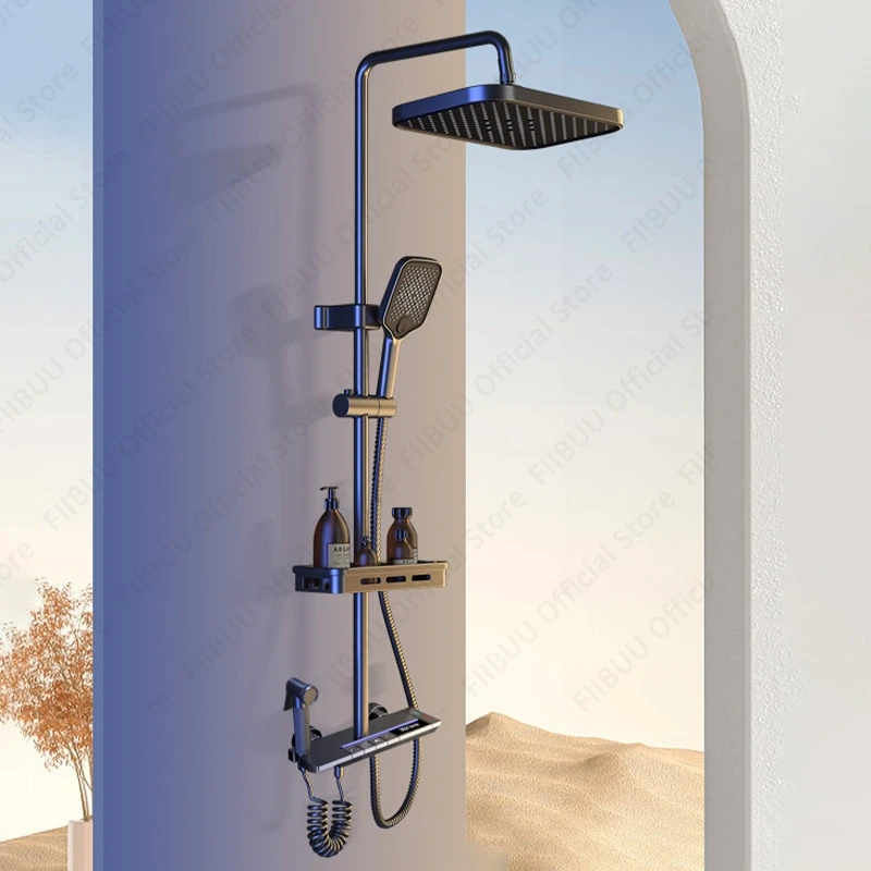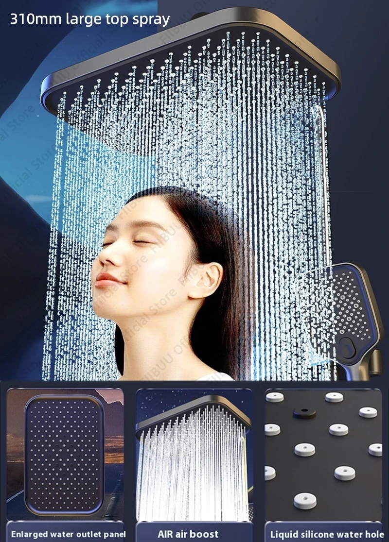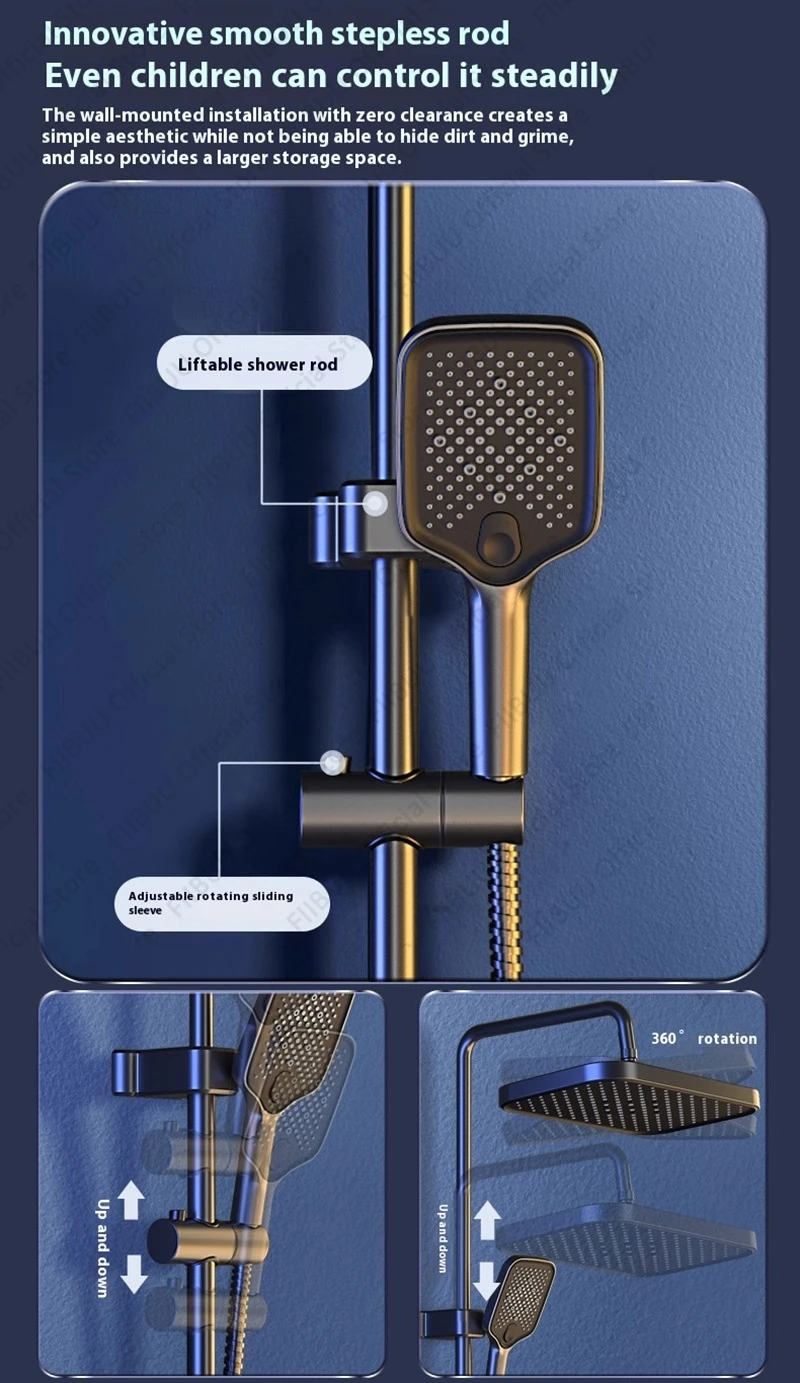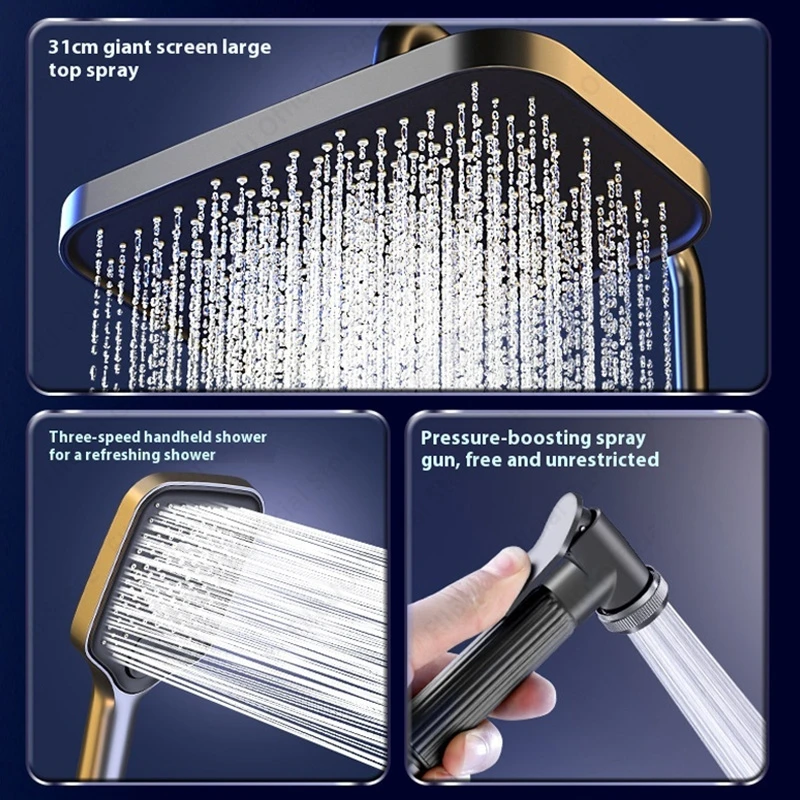 ระบบฝักบัวปรับระดับความสูงได้ ชุดฝักบัวหลายโหมด ฝักบัวทรงสี่เหลี่ยม หัวฝักบัวแรงดันสูง ชุดอุปกรณ์เสริมสำหรับห้องน้ำรุ่นใหม่