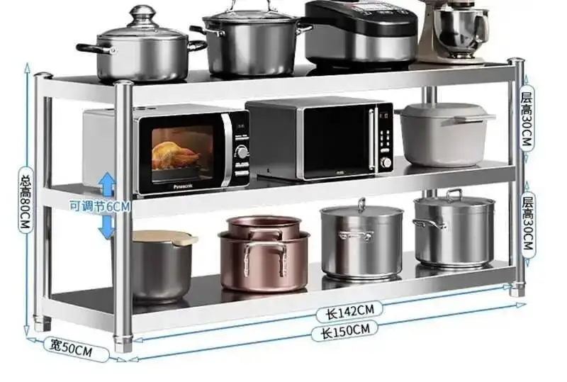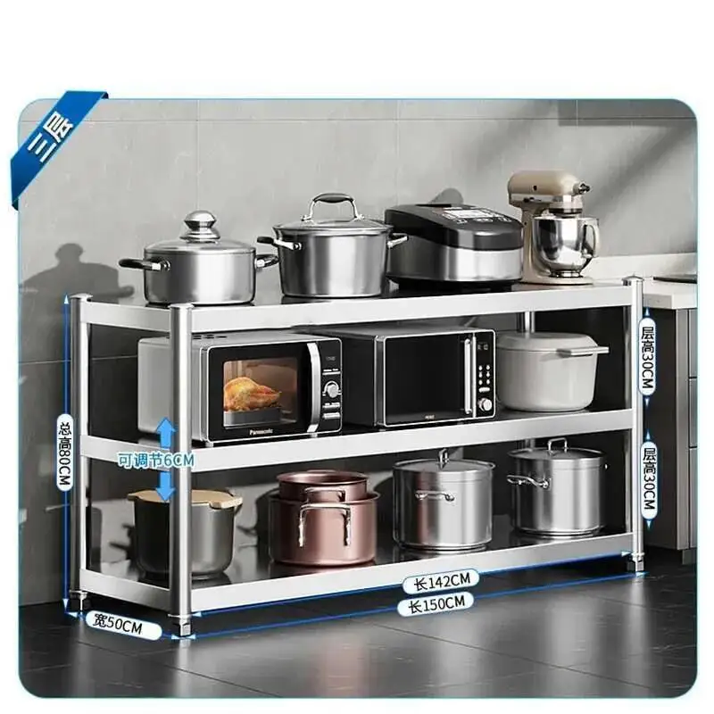 ชั้นวางของหลายชั้น เฟอร์นิเจอร์ ตู้ครัว ชั้นเก็บของ สแตนเลส ชั้นวางอุปกรณ์ครัว โต๊ะทำงานครัว เตาในครัวเรือน