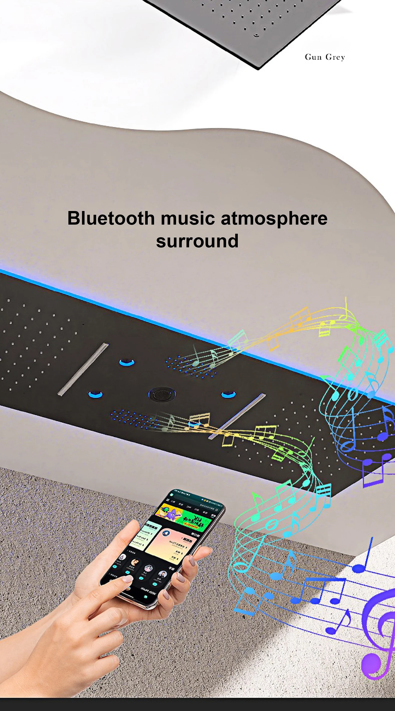 ชุดฝักบัวอาบน้ำระบบเทอร์โมสตัทติดเพดานทองเหลืองหรูหรา พร้อมจอแสดงผลดิจิตอล LED ระบบเสียงบลูทูธ หัวฝักบัวแบบเรนชาวเวอร์ ก๊อกน้ำในห้องน้ำ 1