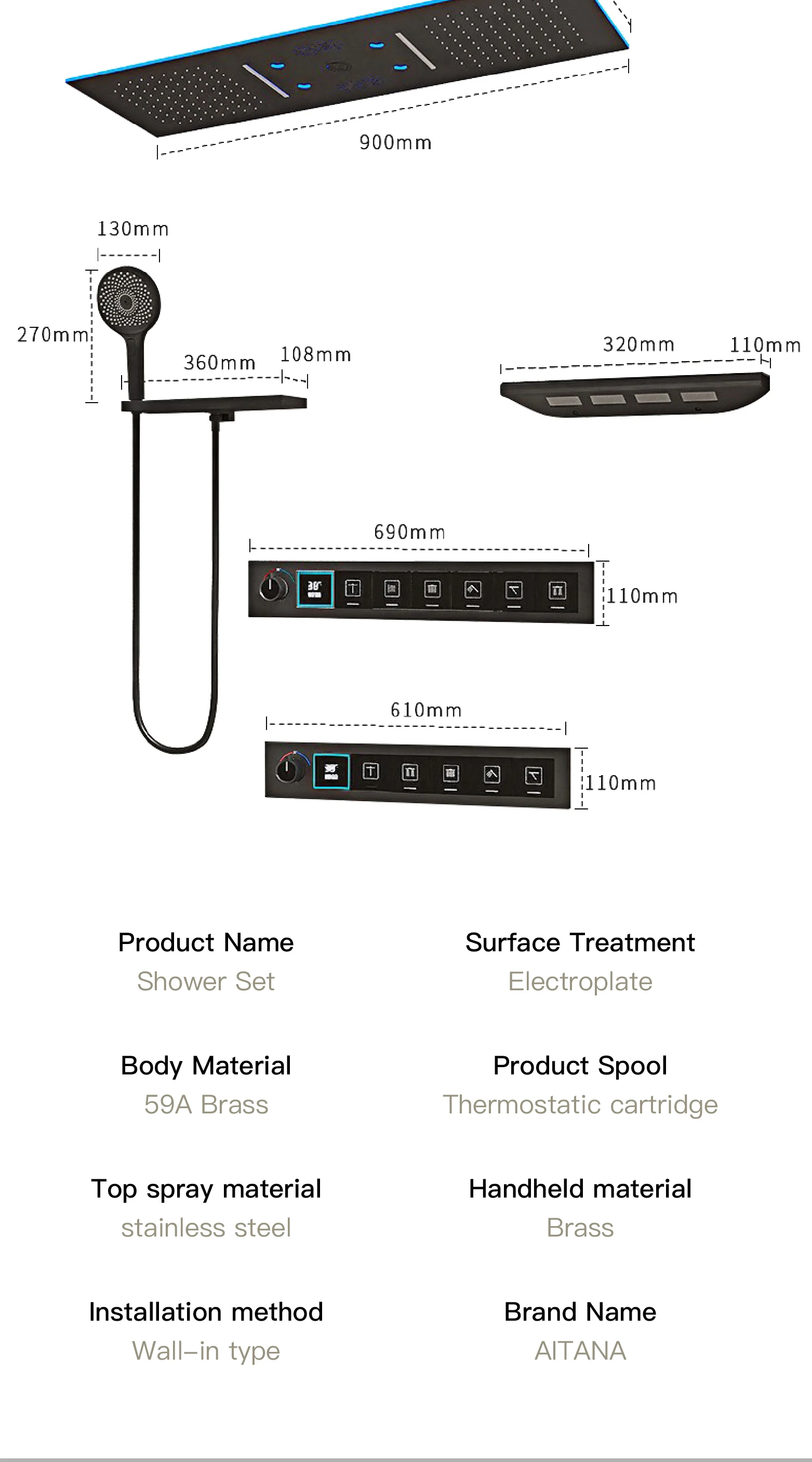 เป็นคนแรกที่จะอ่าน"ชุดฝักบัวอาบน้ำระบบเทอร์โมสตัทติดเพดานทองเหลืองหรูหรา พร้อมจอแสดงผลดิจิตอล LED ระบบเสียงบลูทูธ หัวฝักบัวแบบเรนชาวเวอร์ ก๊อกน้ำในห้องน้ำ"