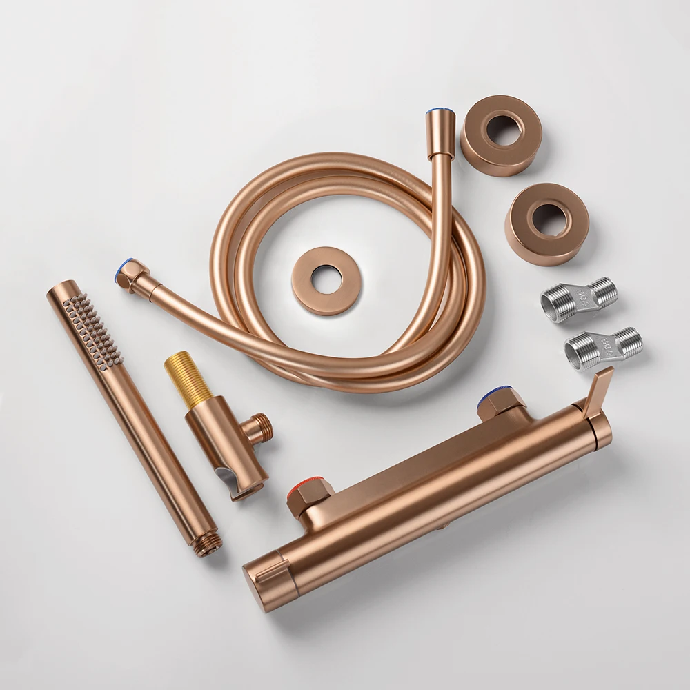 ชุดฝักบัวอาบน้ำแบบมือถือพร้อมก๊อกน้ำตกสำหรับอ่างอาบน้ำในห้องน้ำ, สีโรสบรัช, สีกันเมทัล, สีโรสโกลด์บรัช, สีโครเมียม, สีดำด้าน 1