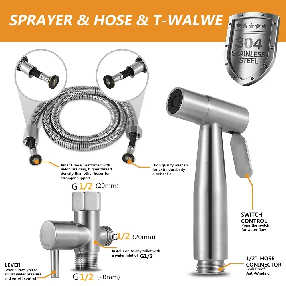 ชุดสเปรย์ชำระนี้ผลิตจากสแตนเลสที่ทนทาน ช่วยให้มีอายุการใช้งานยาวนานและทนต่อการกัดกร่อน