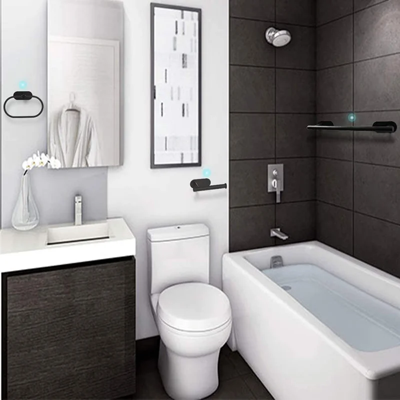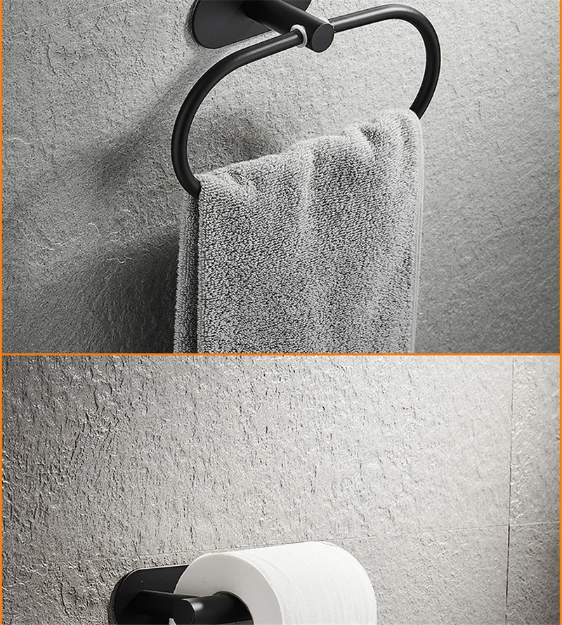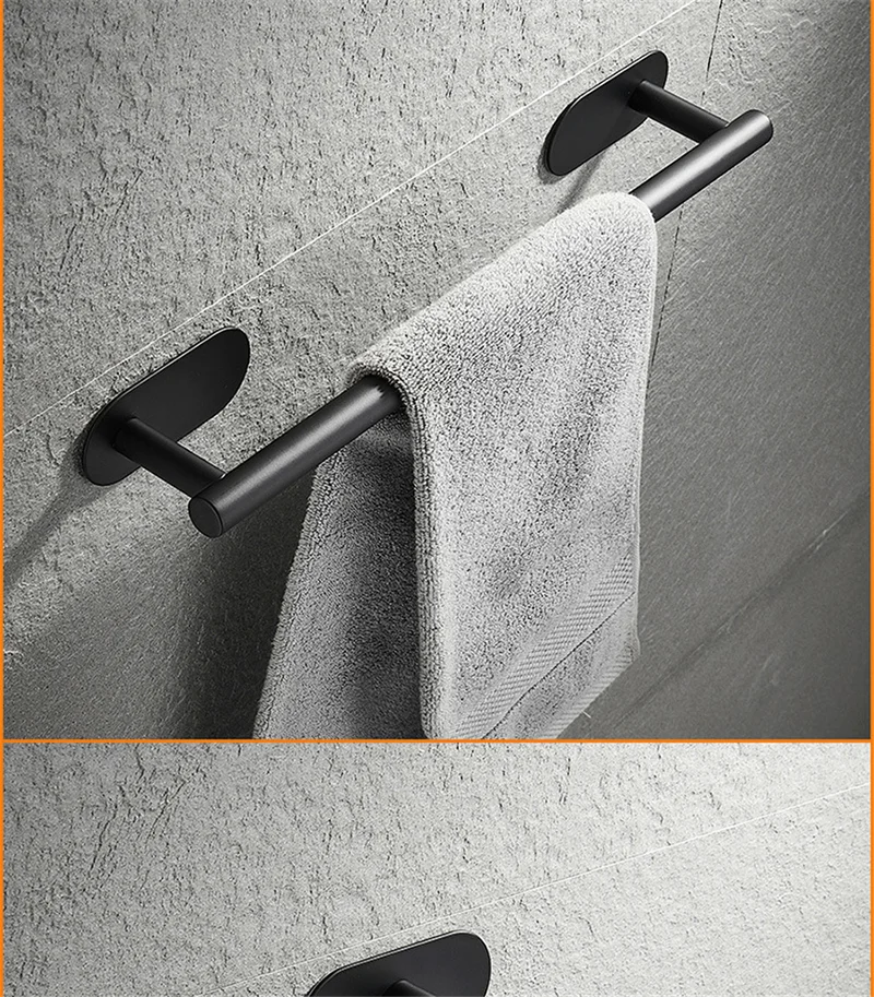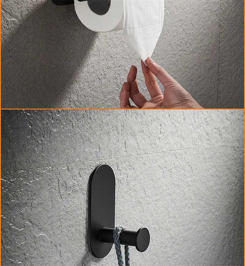 ชุดอุปกรณ์ในห้องน้ำตะขอแขวนผ้าเช็ดตัวแถบกาวในตัวทำจากสเตนเลสสตีลไม่เจาะสีดำสีเงินสีทอง