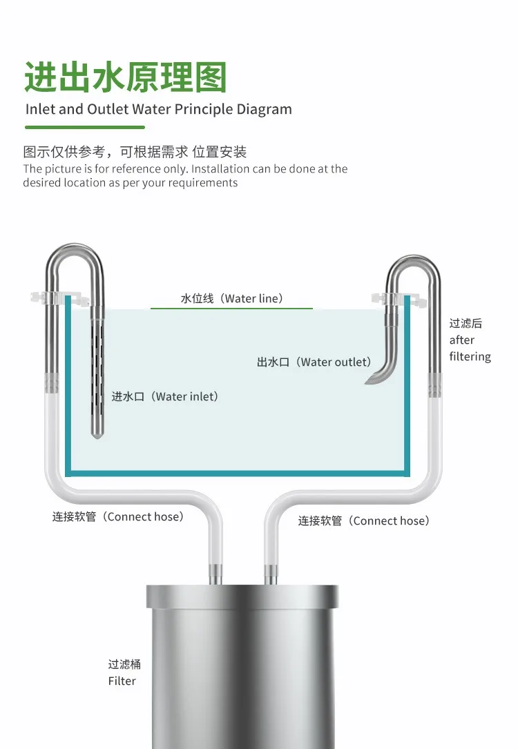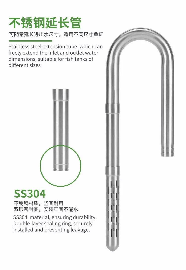การออกแบบการนำเข้าและส่งออก: คันสามารถขยายได้เพื่อให้สามารถใช้ตู้ปลาที่มีความสูงต่างกันได้อย่างสมบูรณ์แบบ (สามารถซื้อคันต่อได้ตามความสูงของตู้ปลา การออกแบบส่วนต่อขยายแบบไร้สาย)