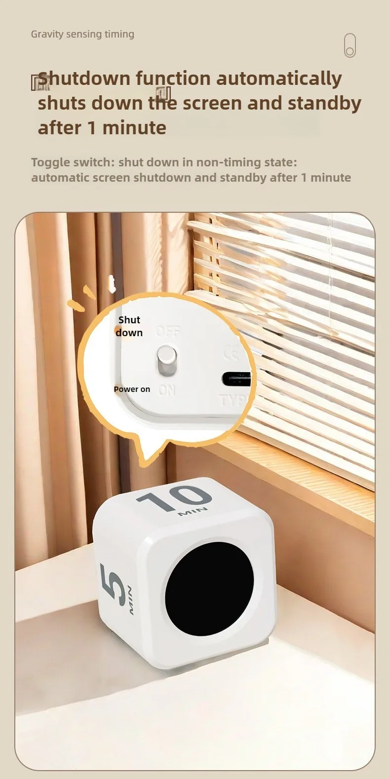 โหมดแรงโน้มถ่วง: หมุนปุ่มไปที่ โหมด 1: พลิกขึ้น 5-10-30-60 นาทีเพื่อเริ่มการนับถอยหลังโดยอัตโนมัติหน้าจอจะพลิกขึ้นและหยุดชั่วคราว ในขณะที่หน้าจอตรงข้ามจะชัดเจนเป็นศูนย์สําหรับการกําหนดเวลาลง