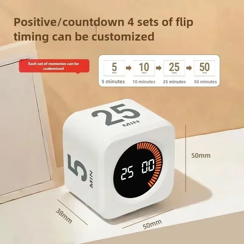 ตัวจับเวลาประสิทธิภาพการทํางาน ตัวจับเวลาลูกบาศก์การผลิต เซ็นเซอร์แรงโน้มถ่วง จอแสดงผล LED 4 เวลาที่ตั้งไว้ เด็ก การจัดการเวลา ตัวจับเวลานับถอยหลังในครัว