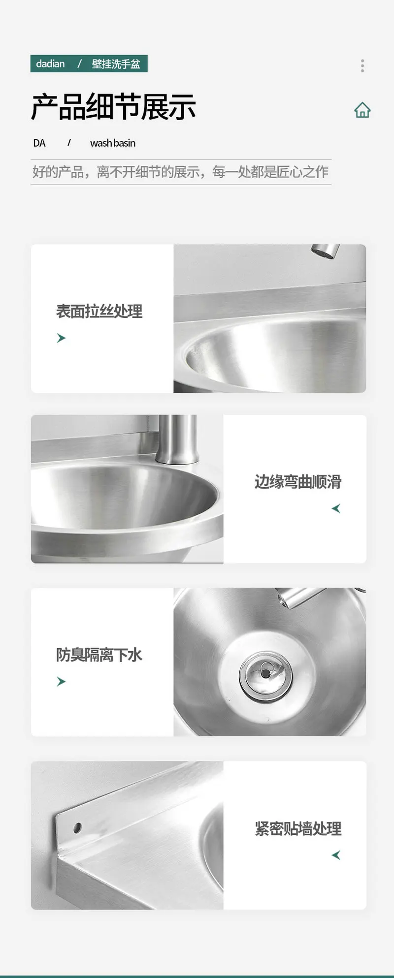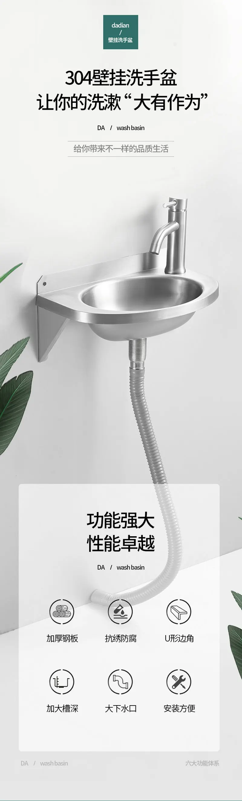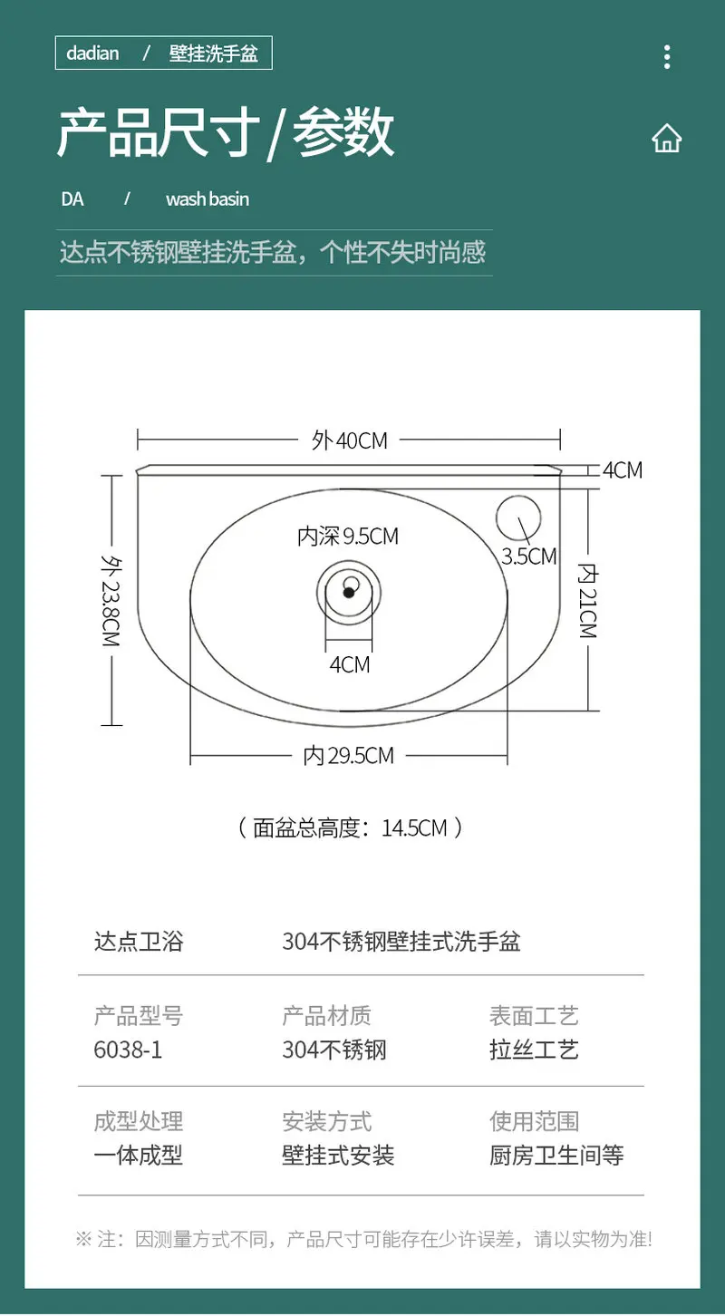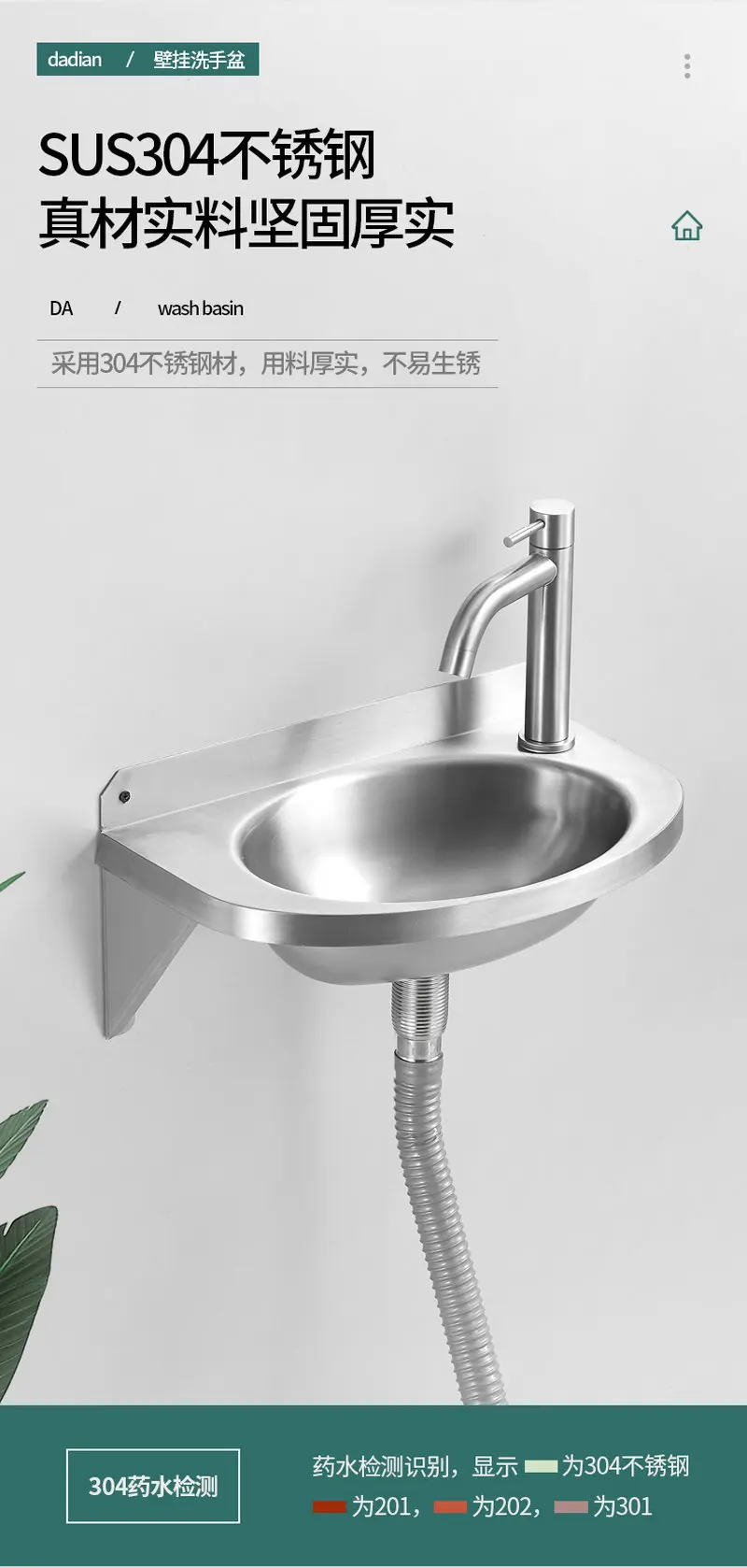 ติดผนัง อ่างล้างจานสแตนเลส 304 Thicken อ่างล้างหน้าพร้อมขายึดสแตนเลส