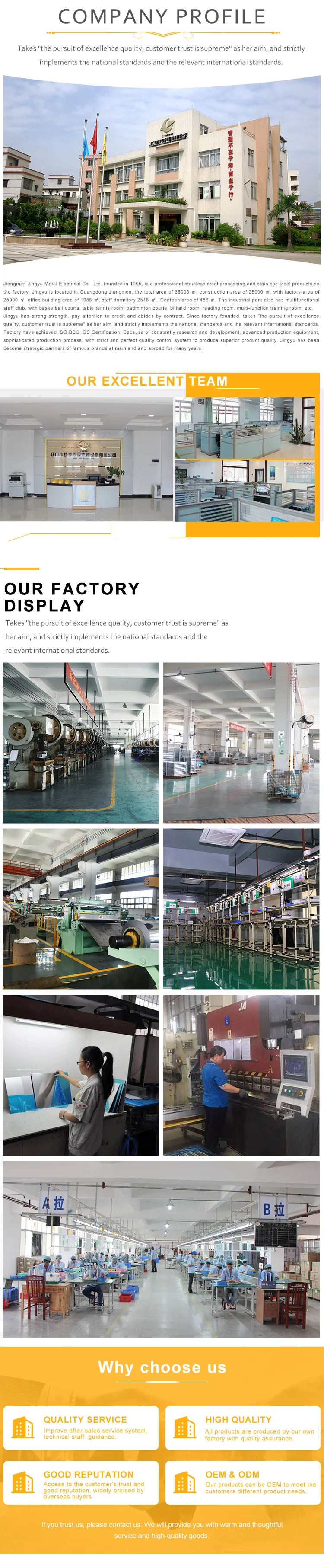 เราเป็นJiangmen Jingyu Metal Electrical Co., Ltd. ก่อตั้งขึ้นในปี 1995ตั้งอยู่ในมณฑลกวางตุ้ง ประเทศจีนบริษัทของเรามีพนักงานทั้งหมดประมาณ 201-300 คนเราเชี่ยวชาญด้านผลิตภัณฑ์ฮาร์ดแวร์