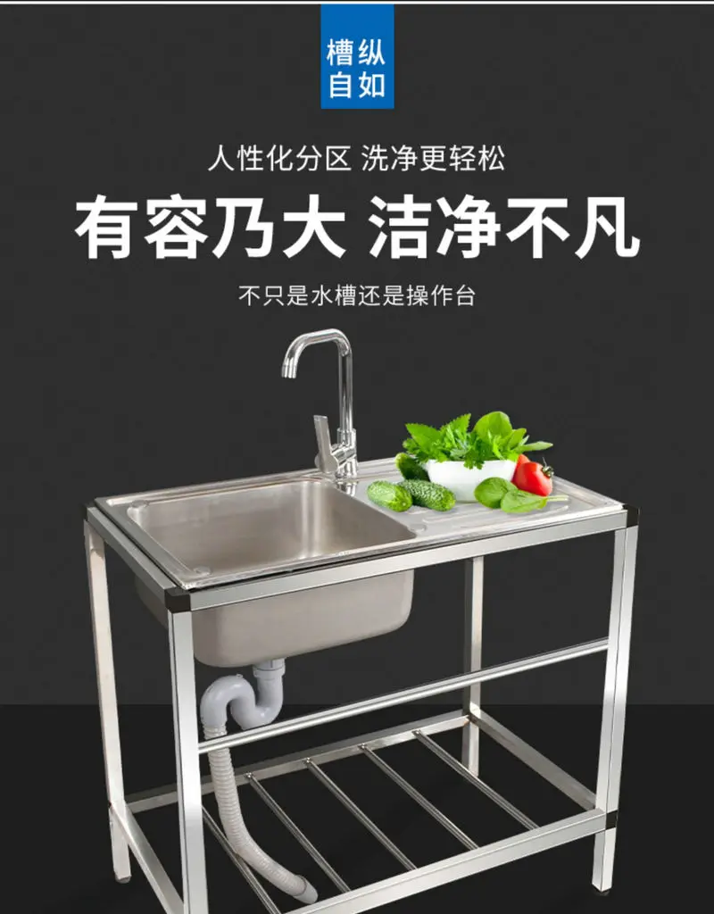 ทั้งหมดยืนฟรีกลางแจ้งที่ผลิตด้วยคุณภาพสูงทั้งร่างกายอ่างล้างหน้าสแตนเลส 304 ข้นพร้อมอ่างล้างจานแบบแพลตฟอร์มพร้อมขายึดสแตนเลส