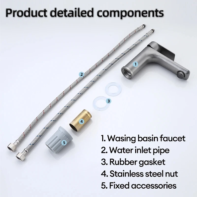 1 * ก๊อกน้ํา; 1 * อุปกรณ์ติดตั้ง; 1 * คู่ท่อน้ําเข้า