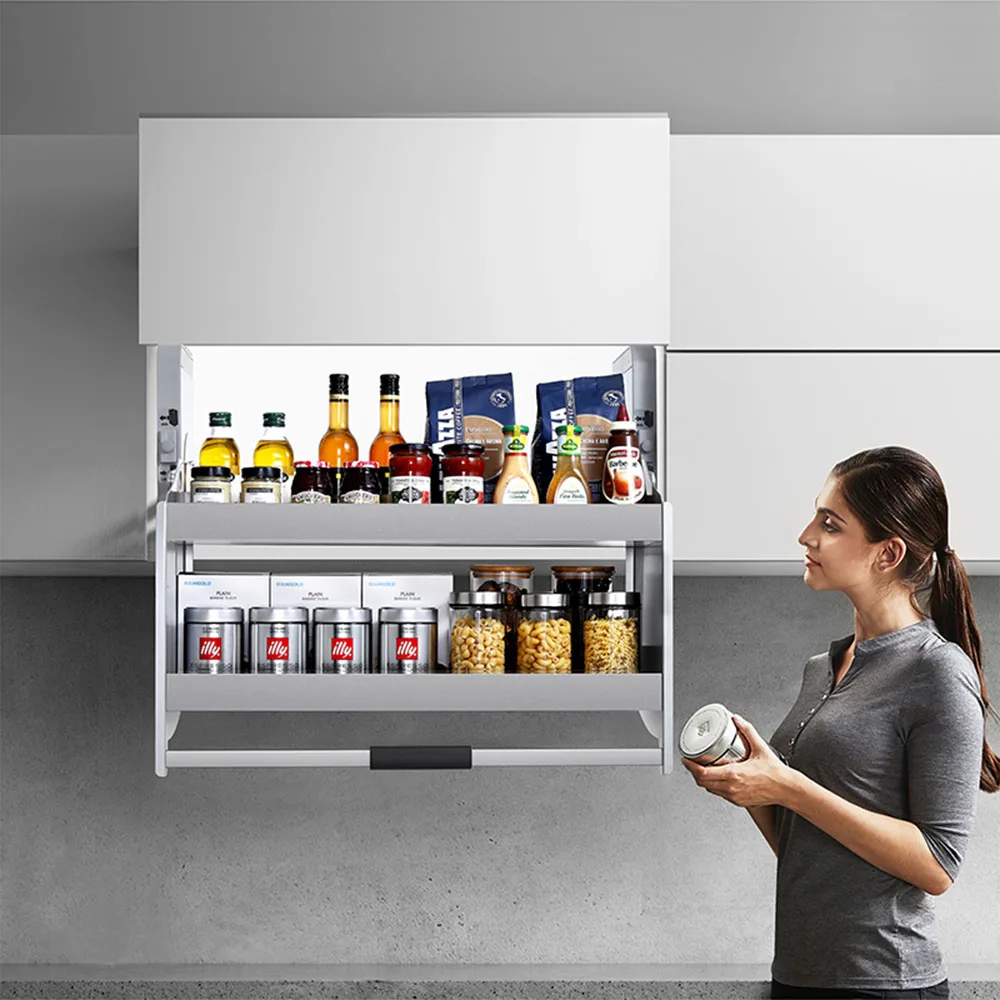 บานพับ, รางลิ้นชัก, ตะกร้า, ถัง, ช้อนส้อม, ที่จับ, อ่างล้างจาน, ก๊อกน้ำ, ไฟ LED |