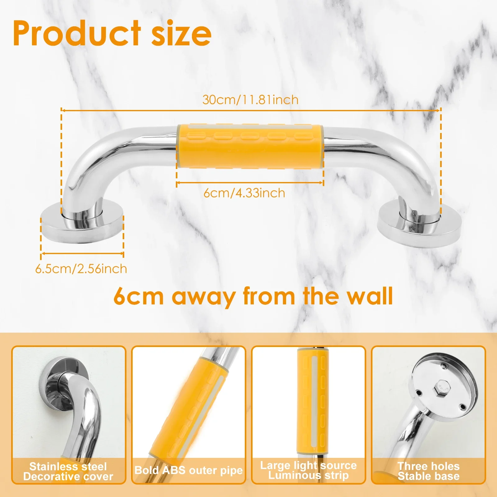 [การออกแบบกันลื่น] ราวจับอาบน้ํานี้ทําจากสแตนเลส 304 คุณภาพสูงและซิลิโคนกันลื่นที่มีเส้นหยักและการออกแบบที่ยื่นออกมา สอดคล้องกับด้ามจับซึ่งเพิ่มแรงเสียดทานและให้การยึดเกาะที่ดี โดยเฉพาะอย่างยิ่งเมื่อจับยากหรือมือเปียก