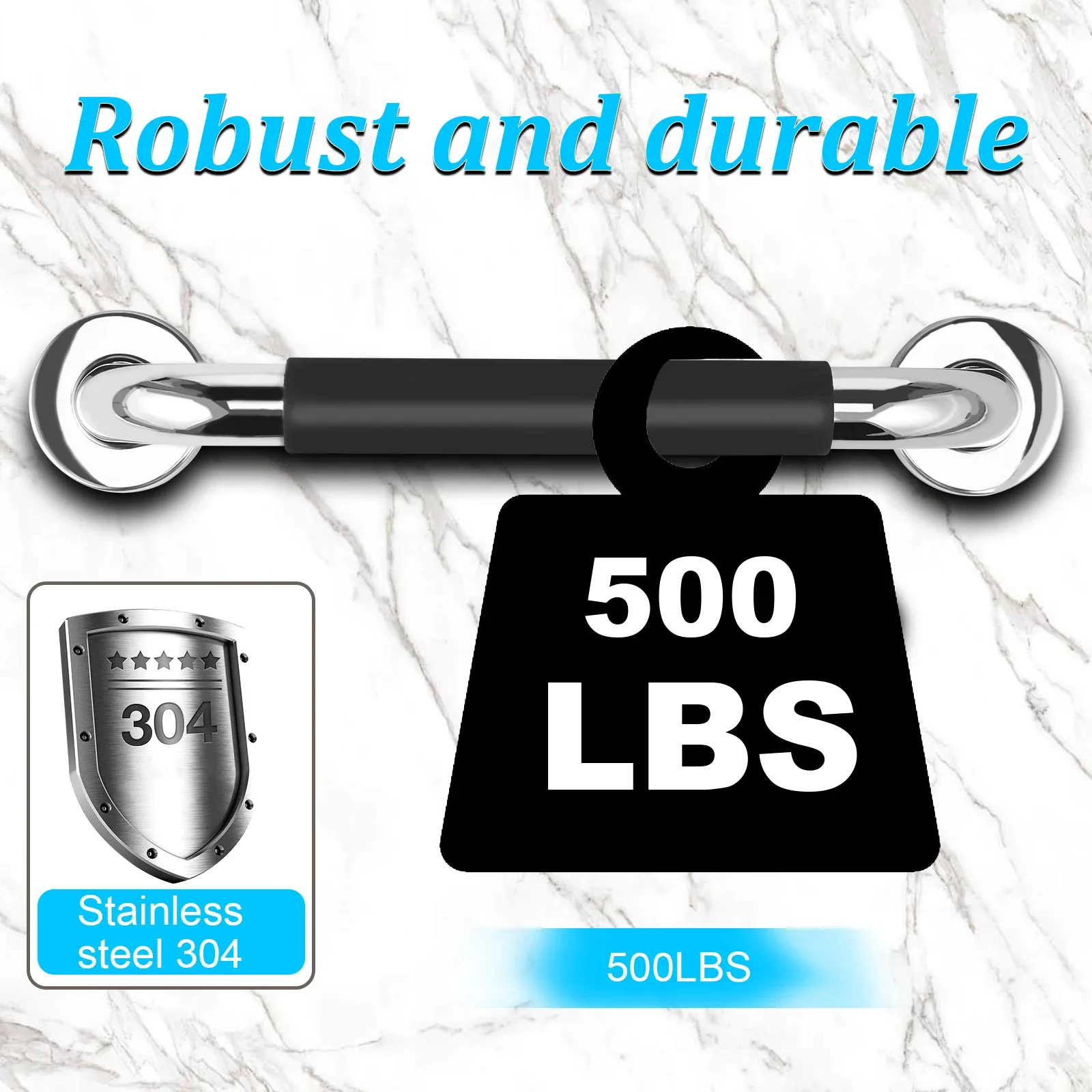[สแตนเลส 304 คุณภาพสูงและทนต่อน้ําหนักได้ถึง 500 ปอนด์] ที่จับบาร์นี้ทําจากวัสดุสแตนเลส 304 คุณภาพสูง ทนทานมากและจะไม่เกิดสนิมเมื่อเวลาผ่านไปด้วยความจุน้ําหนักได้ถึง 500 ปอนด์ จึงสามารถสร้างประสบการณ์ห้องน้ําที่ปลอดภัยสําหรับครอบครัวของคุณได้