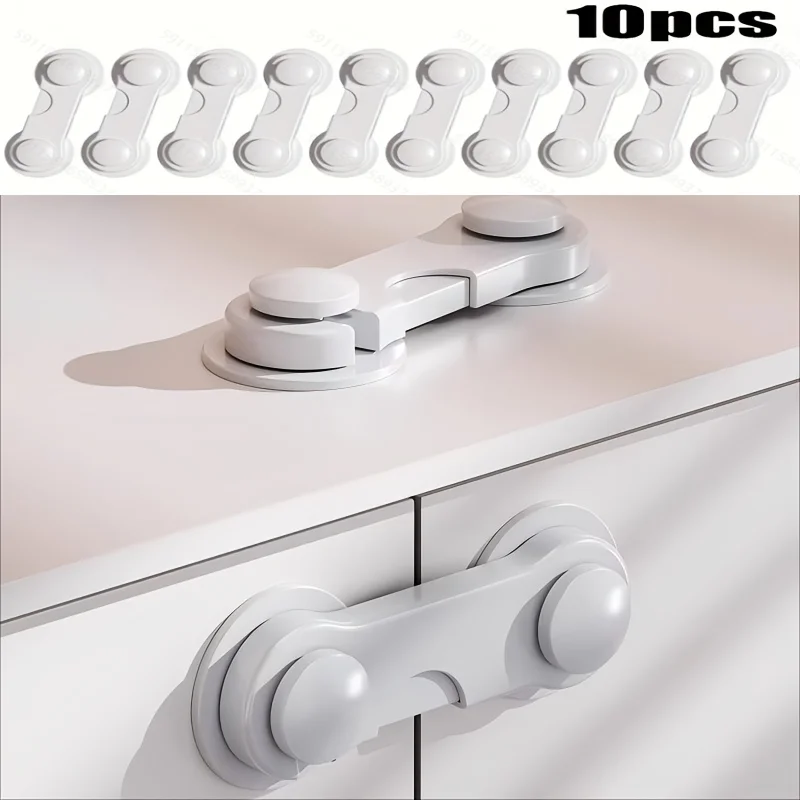 สายรัดนิรภัยสำหรับเด็ก 10 ชิ้น ตัวล็อคความปลอดภัยสำหรับเด็ก ล็อคตู้ลิ้นชัก ตัวล็อคตู้แบบกาว ตัวล็อคประตูลิ้นชัก 1