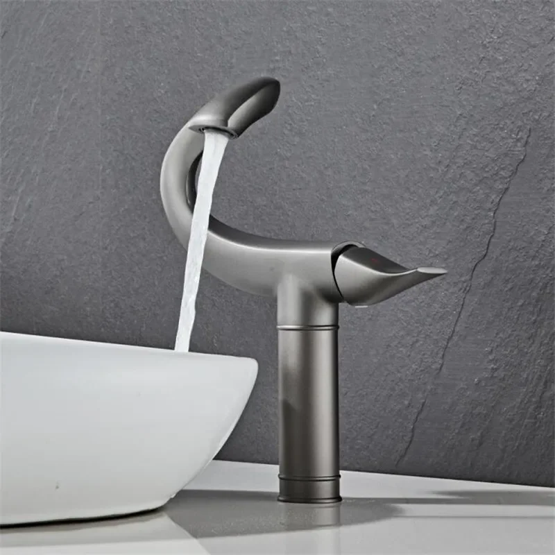 Tuqiu สีเทาก๊อกน้ําห้องน้ําทองเหลืองทองสีขาวห้องน้ําอ่างล้างหน้าก๊อกน้ําเย็นและน้ําร้อน Mixer Sink Tap Deck ติดตั้งสีดํา/ChromeTap