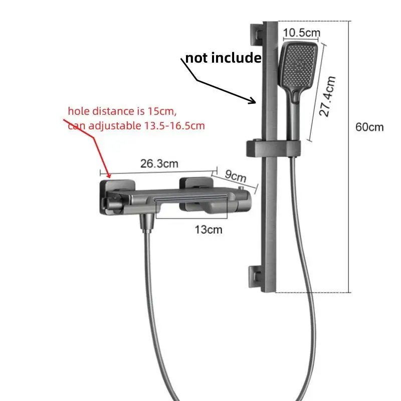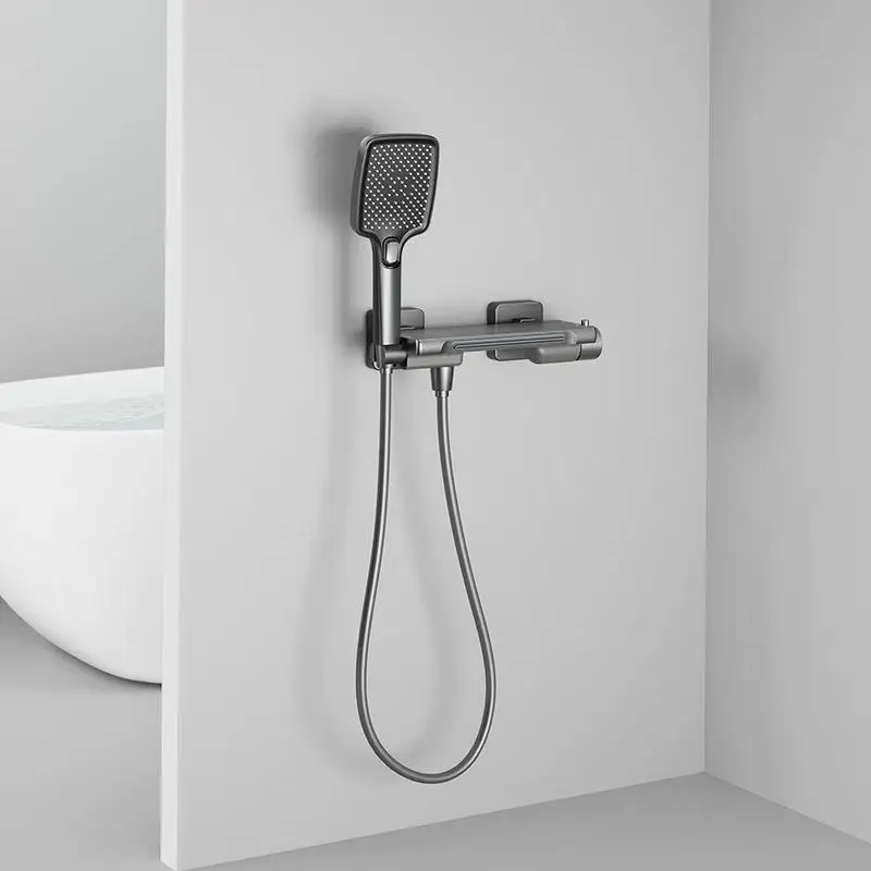 สีเทาน้ําตกอ่างอาบน้ําก๊อกน้ําชุดฝักบัวห้องน้ําติดผนังทองเหลืองร้อนและเย็นวาล์วอาบน้ําหัวฝักบัว 1