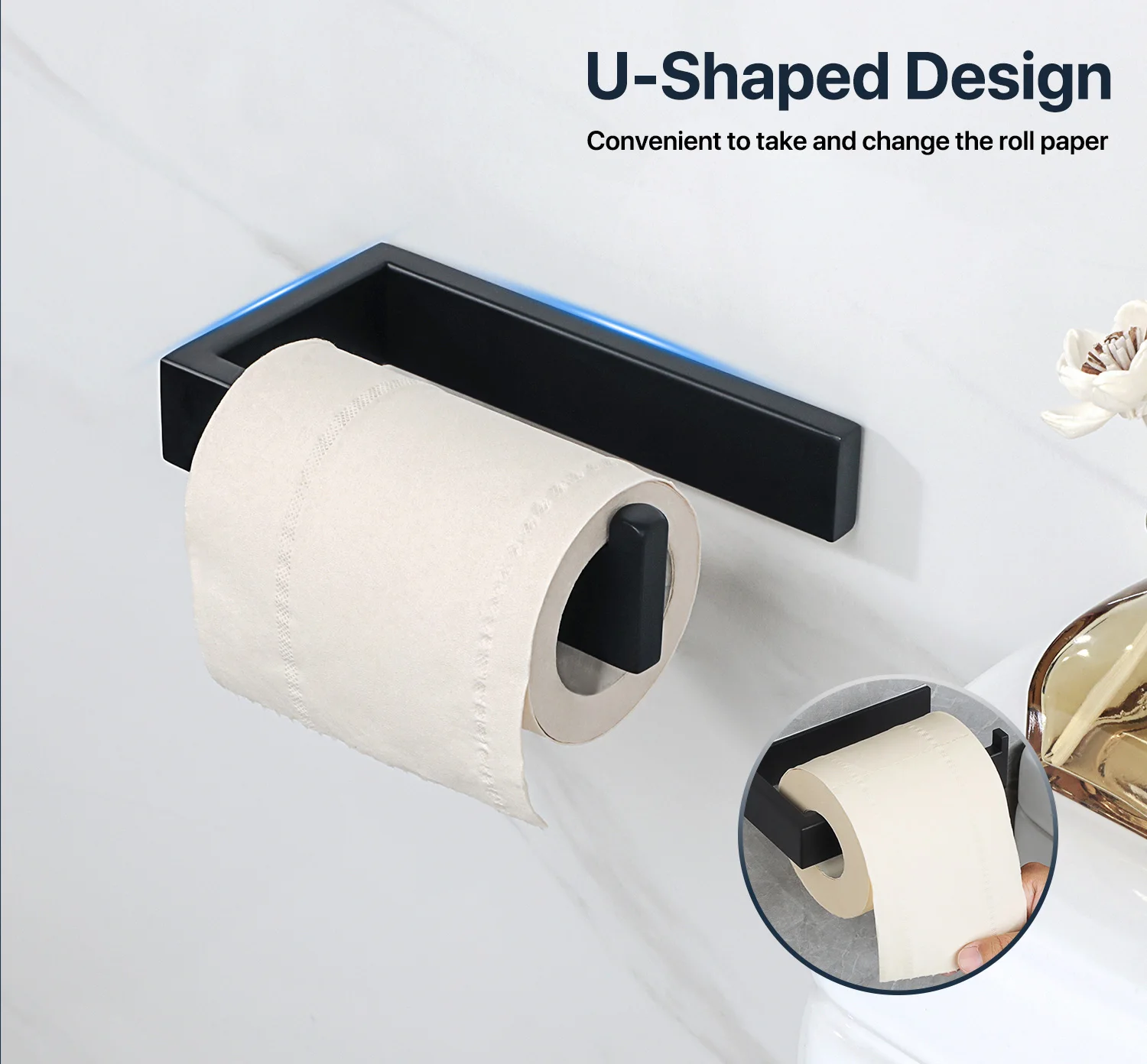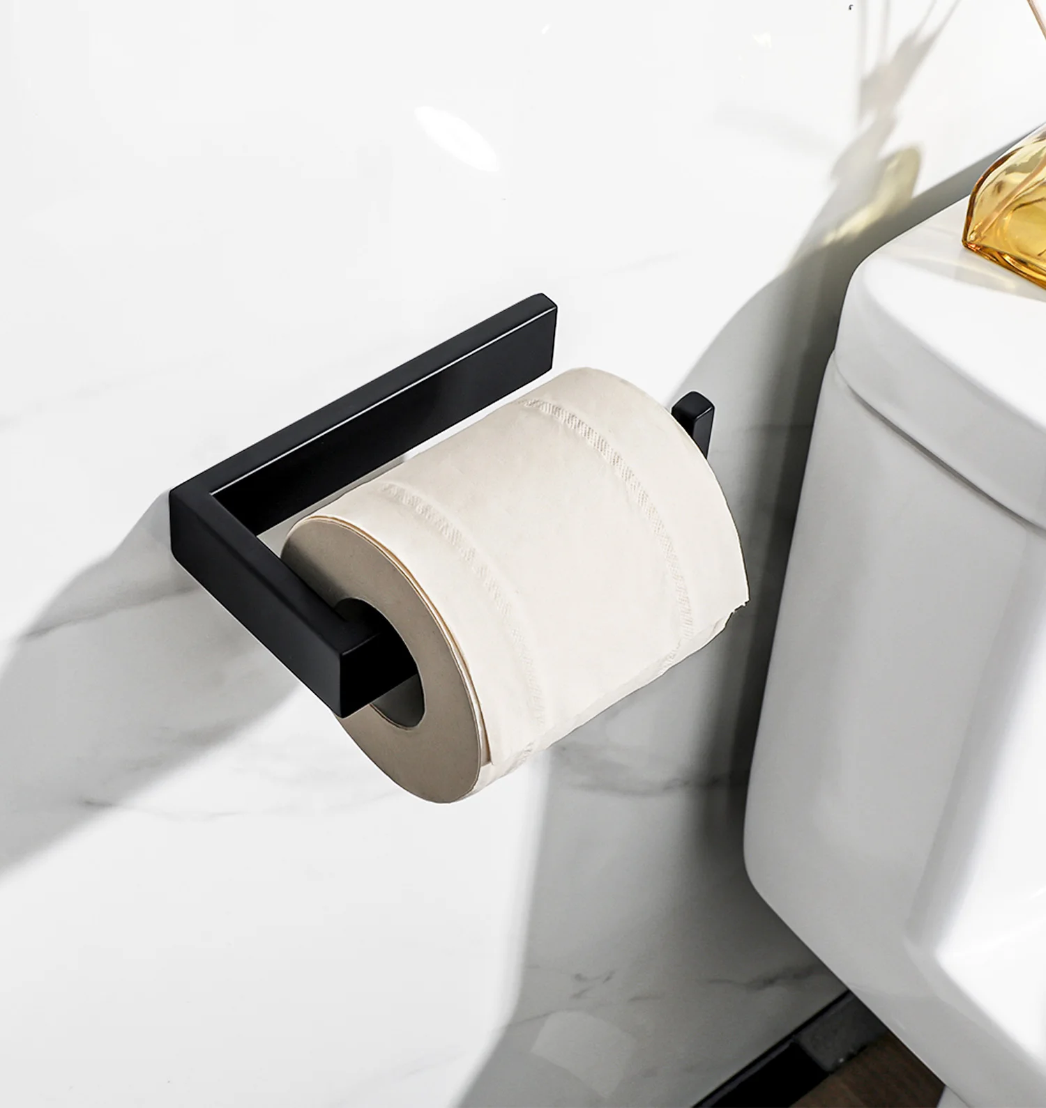 สแตนเลสสุขาม้วนผู้ถือ Wall Mount กระดาษทิชชูห้องน้ําผู้ถือ Self Adhesive Matte สีดํากระดาษทิชชูอุปกรณ์เสริม 1