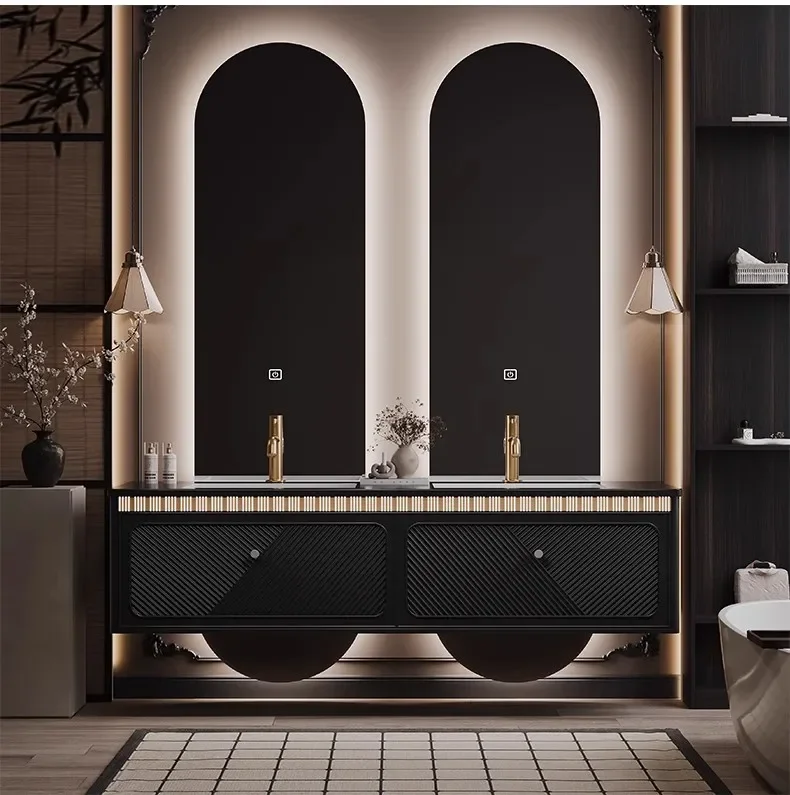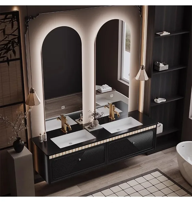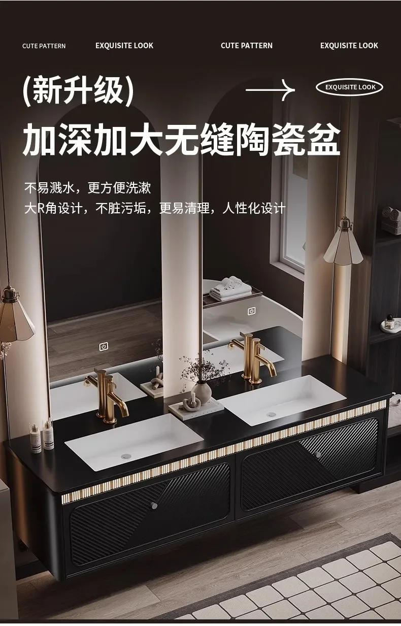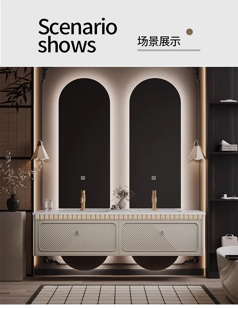 หรูหราสไตล์โรงแรมตู้ห้องน้ําอ่างล้างหน้าคู่ผสมแผ่นหินฝรั่งเศสอ่างล้างหน้าตู้ห้องน้ําอ่างล้างหน้า 1