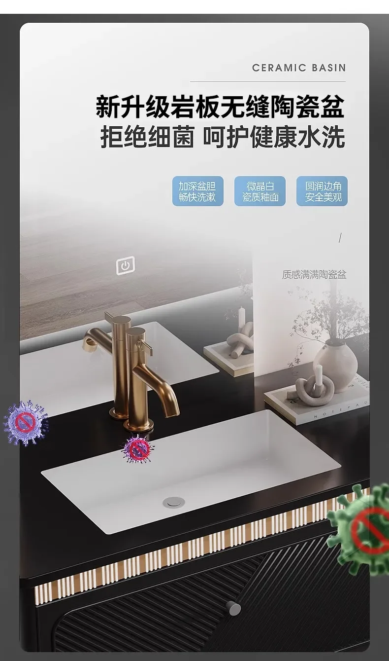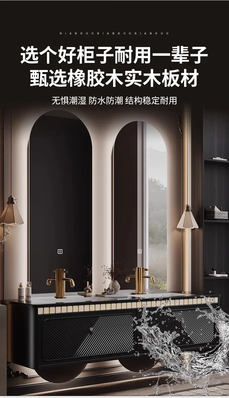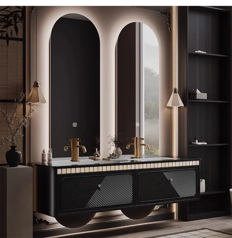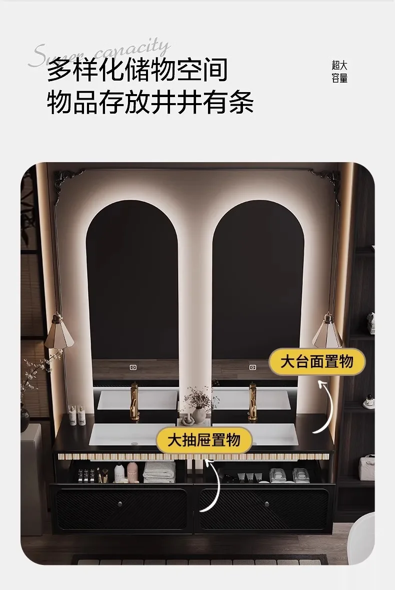หรูหราสไตล์โรงแรมตู้ห้องน้ําอ่างล้างหน้าคู่ผสมแผ่นหินฝรั่งเศสอ่างล้างหน้าตู้ห้องน้ําอ่างล้างหน้า 1