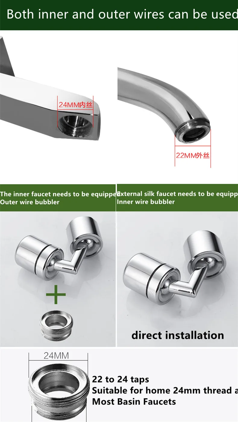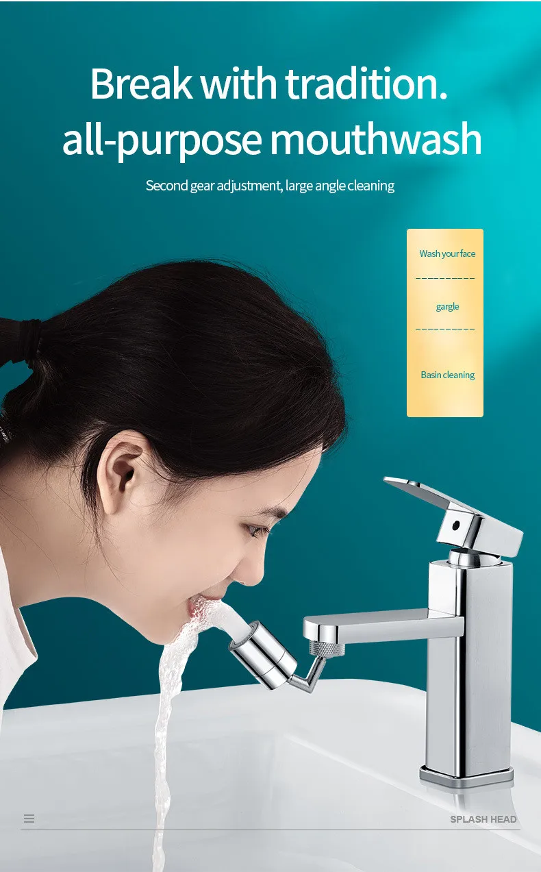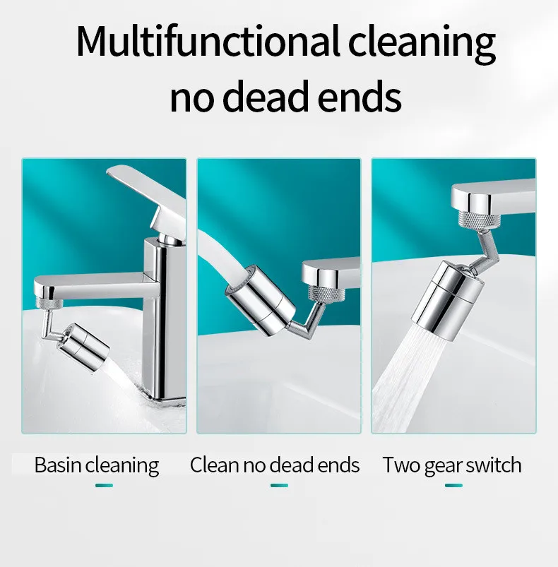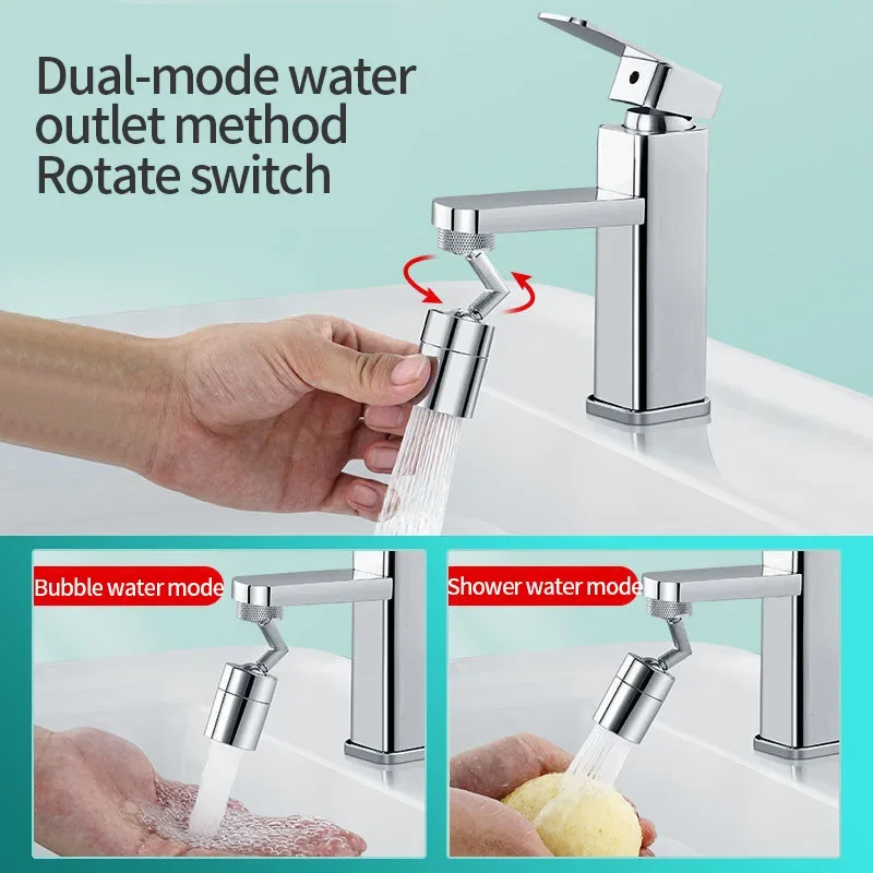 2 โหมด 720° หัวก๊อกน้ำอเนกประสงค์พร้อมตัวกรองน้ำ ป้องกันการกระเด็น หมุนได้ ประหยัดน้ำ หัวฉีดน้ำสำหรับก๊อกน้ำในครัว ตัวต่อขยายก๊อกน้ำสำหรับอ่างล้างหน้า