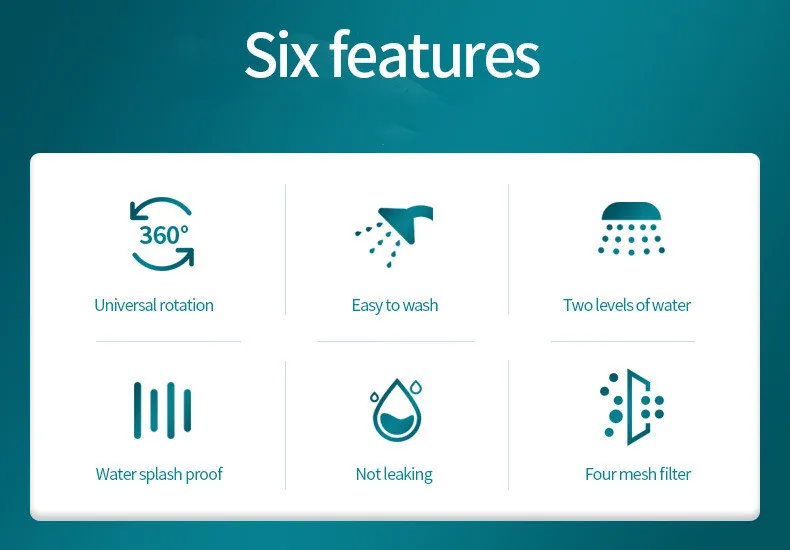 สวิตช์ 2.2 ชั้น, 4 ชั้น, ปะเก็นคู่, สวิตช์หมุนทางออกน้ำสองประเภท, โฟมที่อุดมด้วยออกซิเจน, น้ำป้องกันการกระเซ็น, ตัวกรองตาข่ายสี่ชั้นเพื่อขจัดสิ่งสกปรกและปะเก็นคู่เพื่อป้องกันการหยด