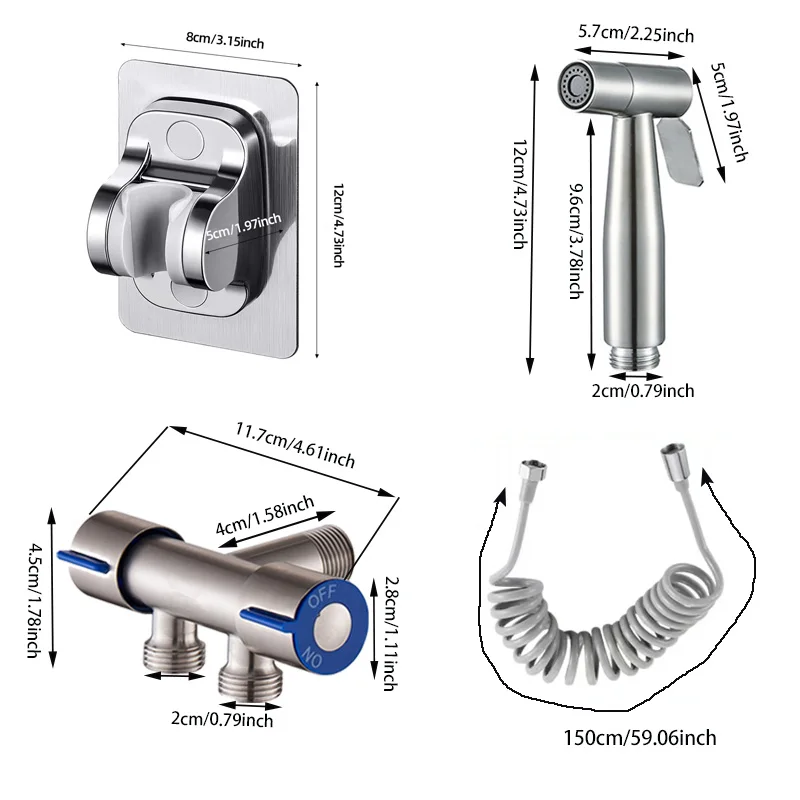 1*304 สแตนเลสสตีล Bidet สเปรย์อาบน้ํา, 1 * ท่อพับเก็บได้ 1.5 M, 1*304 สแตนเลสสตีลห้องน้ําวาล์วมุม, 1 * ไม่เจาะวงเล็บ