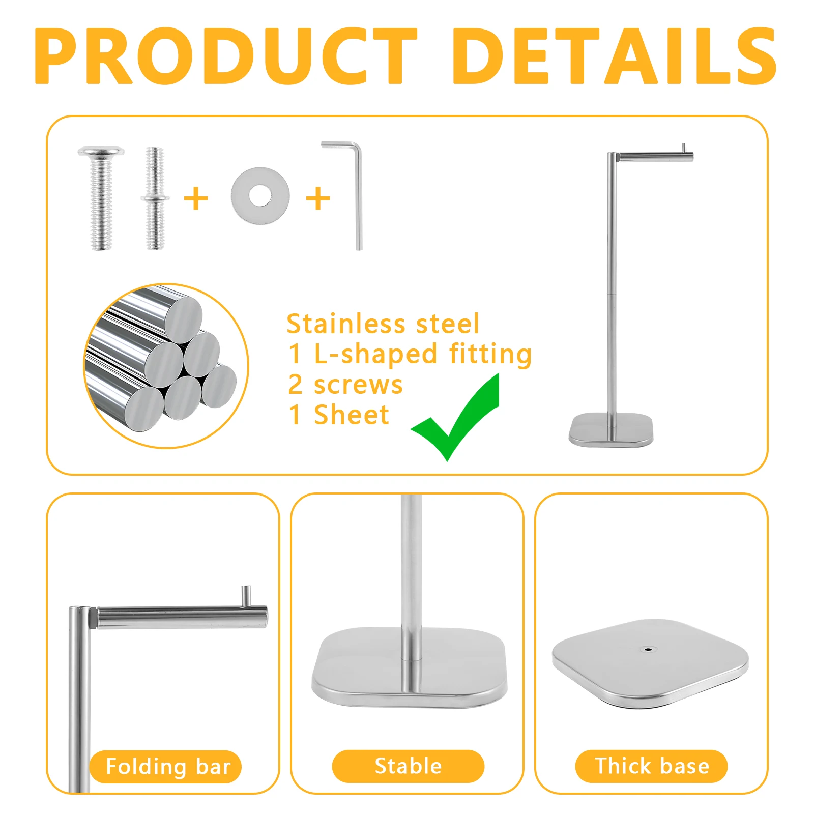 [วัสดุสแตนเลส] ที่ใส่กระดาษชําระแบบอิสระนี้ทําจากสแตนเลสคุณภาพสูง ป้องกันสนิม ป้องกันรอยขีดข่วน สามารถใช้ในสภาพแวดล้อมที่ชื้นเป็นเวลานาน การออกแบบที่เรียบง่ายและมีสไตล์ยังสามารถเพิ่มการตกแต่งพิเศษให้กับพื้นที่ของคุณได้