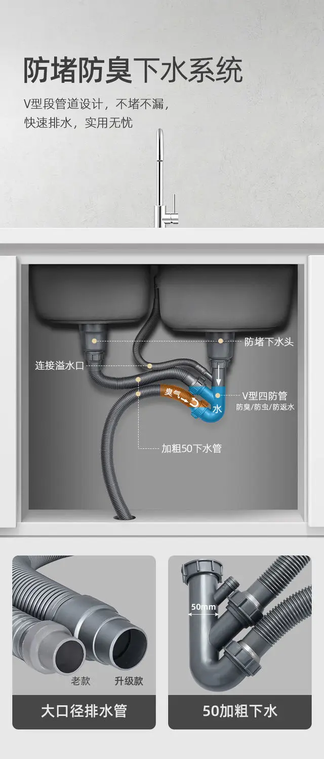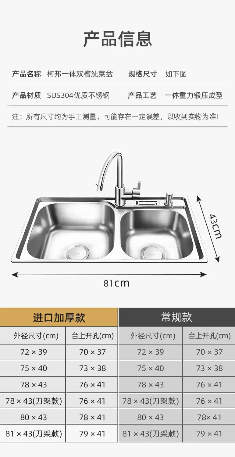 อ่างล้างจานสแตนเลส 304 สำหรับห้องครัว อ่างล้างจานคู่ อ่างล้างผักแบบหนา ชุดอ่างล้างจานพร้อมอ่างล้างผักแบบคู่ ผิวขัดเงา 1