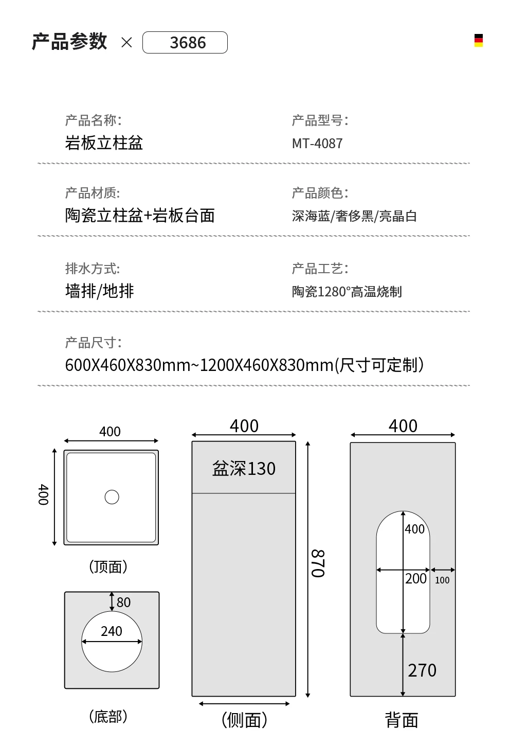 | รูปทรงอ่างล้างหน้า | สี่เหลี่ยมผืนผ้า |